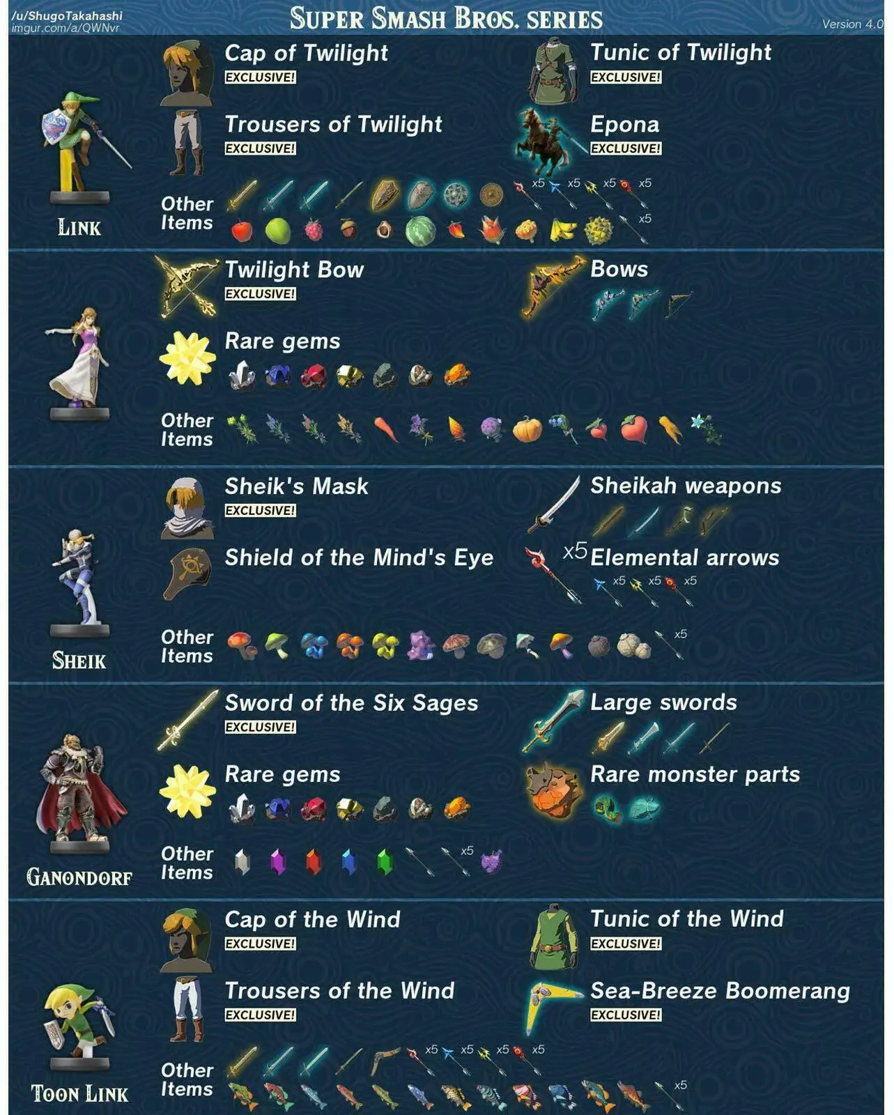 Важные Примечания: Карта может использоваться только один раз в день. Вы можете использовать его только в дикой природе. Каждая карта имеет конкретное изображение персонажа Zelda на нем, NFC карта используется как amxxbo Рисунок и дает вам конкретные элементы при сканировании. Вы можете сканировать каждую карту каждый день. Награда, предоставленная Каждая карточка рандомизирована и изменяется.![]() ![]() ![]() ![]() ![]()