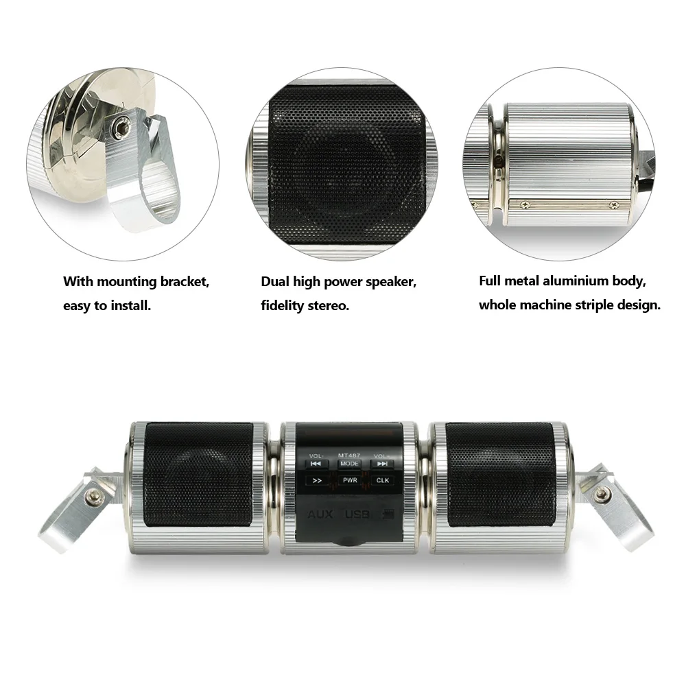 Универсальный мотоцикл Высокая точность стерео водонепроницаемый MP3-плеер динамик FM BT Радио Аудио система для скутера велосипед ATVПолностью металлический алюминиевый дизайн с высококачественным динамиком, супер крутой стерео для вашего мотоцикла.