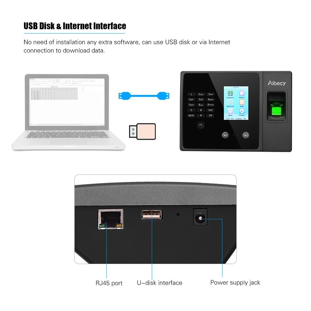 Usb-диск и Интернет-интерфейс:Можно использовать usb-диск для загрузки отчетов о посещаемости, загрузки/загрузки формы сотрудников. Продукт поставляется с функцией сетевого подключения, удобным в эксплуатации и управлении.