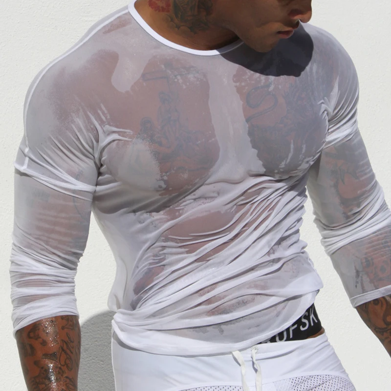 Отзывы о Мужская Просвечивающая футболка с длинным рукавом голубая компрессионная