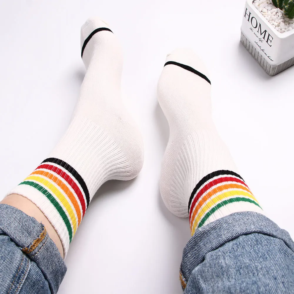 Отзывы о Новые женские спортивные хлопковые модные в японском стиле полосатые высокие