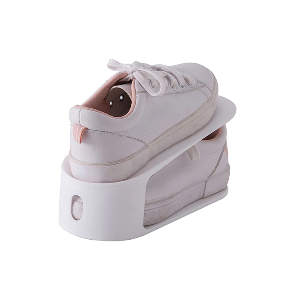 Двухслойный дизайн, так что вы можете положить 2 обуви на стойку, это экономия пространства.