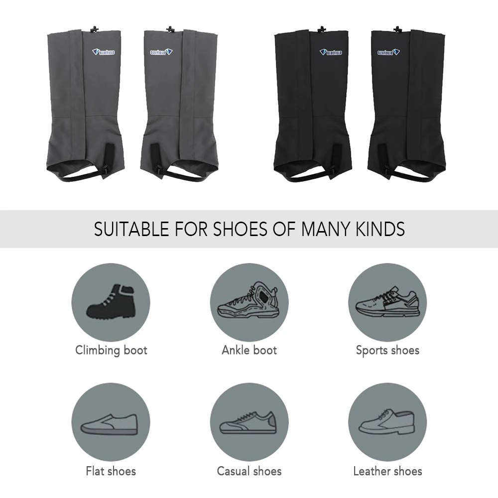 Свободная драпировка делает гетры подходящими для обуви и сапог, чтобы держать воду, снег и грязь от ваших сапог и обуви. Эти износостойкие, противоскользящие и ветрозащитные гетры станут хорошей защитой для походов на открытом воздухе, прогулок, охоты и других зимних видов спорта.