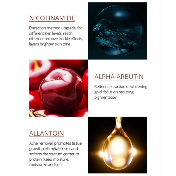 Бета-глюкан, Липиды кожи животных, гидролизованный рыбий кожный белок, коллагеновые аминокислоты, керамид 1, укейл гексапептид-л, Олигопептид-л, никотинамид, трансферная кислота, токоферол (влитамин, бисаболол, альфа-арбутин, аллантоин, гиалуронат натрия, глицерин, бутандиол
