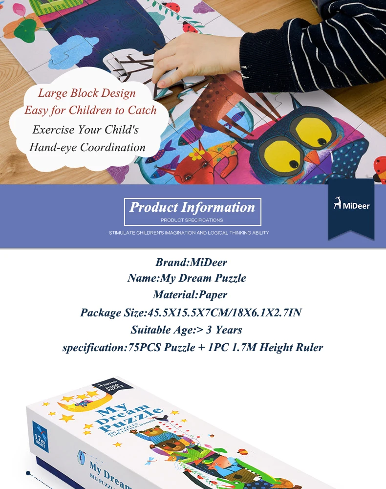 Отзывы о MiDeer пазл длиной до пола 170 см (67 дюймов) от 3 6 лет 75 шт. большой бумажный с линейкой