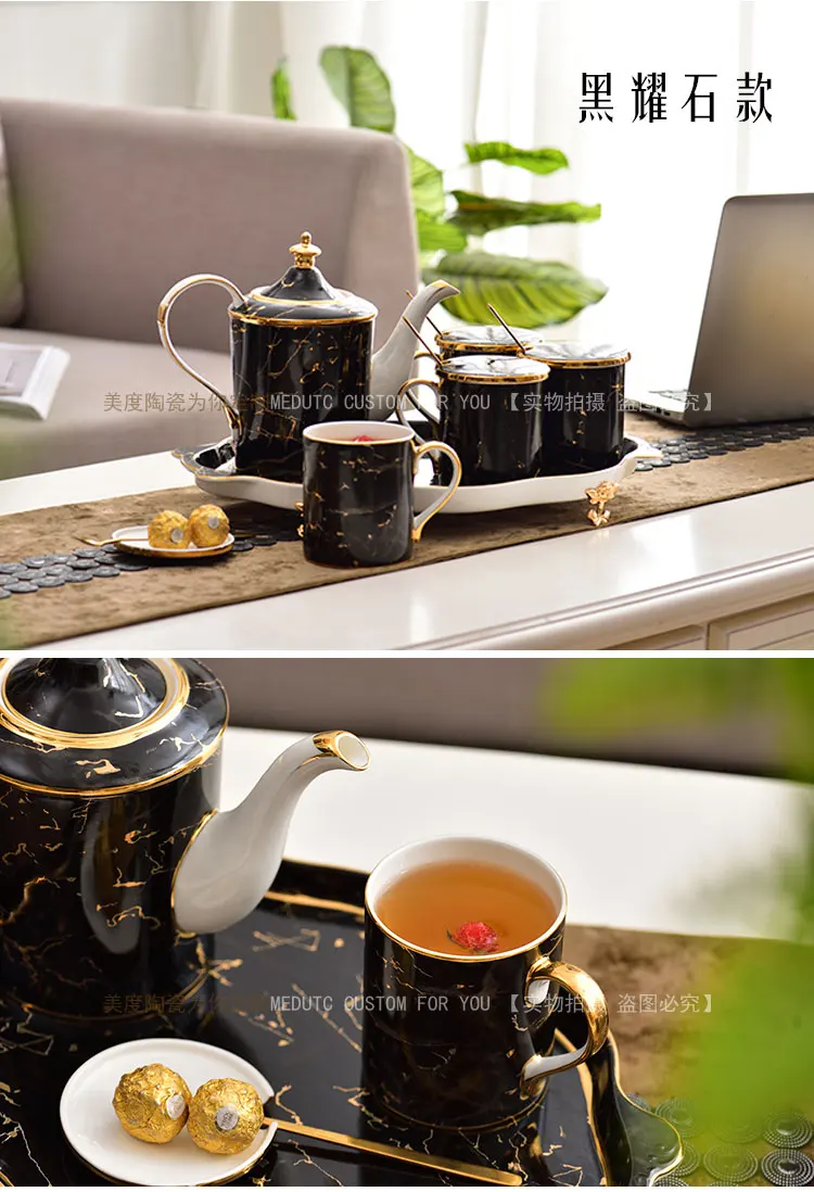 Отзывы о American Ceramic Coffee Set Cold Water Pot Black Gold Marble Afternoon Tea With Tray Cup LidAnd spoon Home Drinkware | Дом и сад