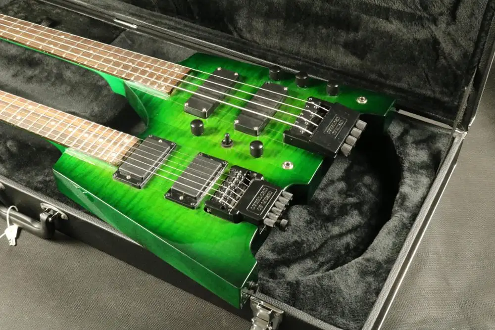 Отзывы о Hign конец качество двойная электрическая гитара ra зеленый цвет Безголовый бас