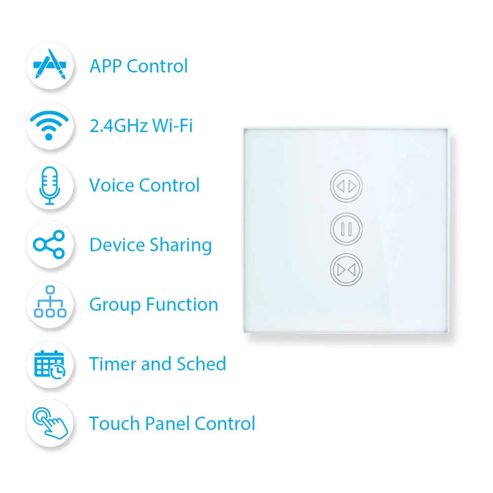 Приложение пульт дистанционного управления-SmartLife требует удобных устройств, вы можете дистанционно управлять шторкой в любом месте через приложение, пока ваш телефон iOS/Android имеет сеть 3g/4G/wifi, обратите внимание, что Wi-Fi коснутый переключатель должен подключить нейтральную линию.