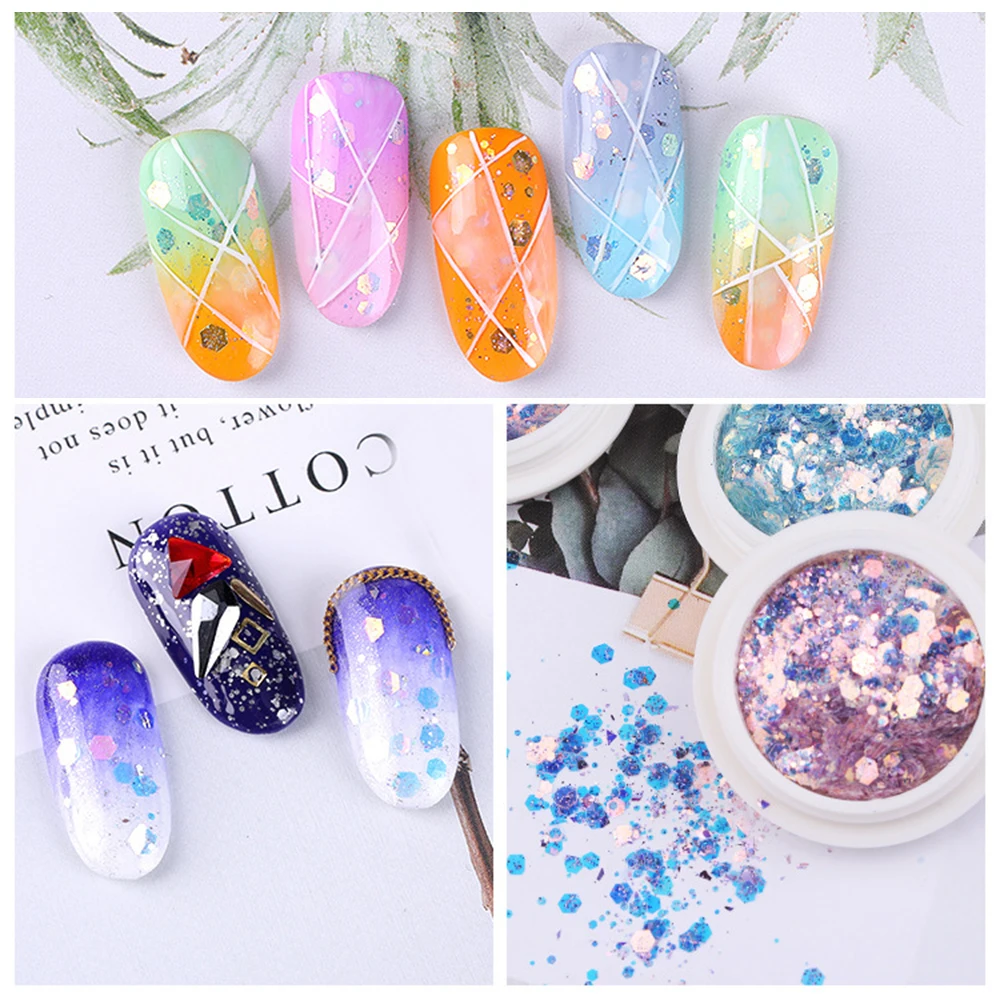 Дизайн ногтей смешивание Блестящие Блестки лазерный градиент блестящий цвет порошок аксессуары для ногтей.