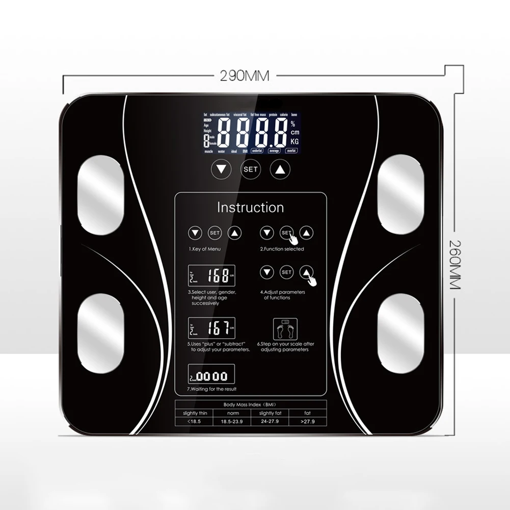Bathroom Body Fat BIM Scale LED Body Index Electronic Digital Smart Weight Scale Household Weighing Balance Connect Composition
