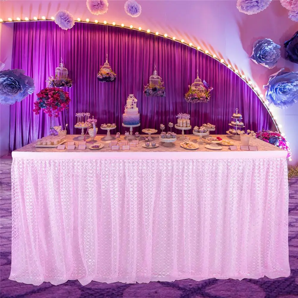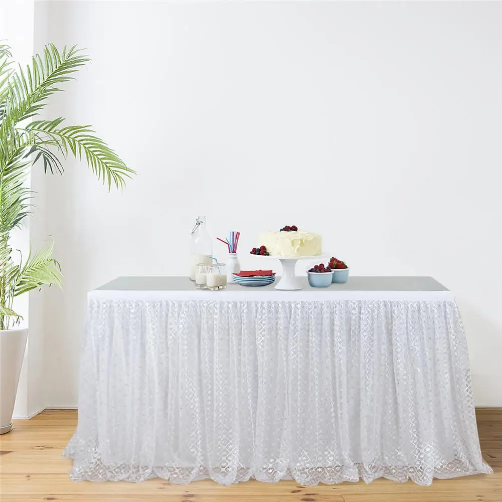 1. Фантазийное Украшение: очень мечтательная кружевная юбка для стола. В отличие от традиционного однотонного цвета, эта настольная юбка с узором из полых цветов,