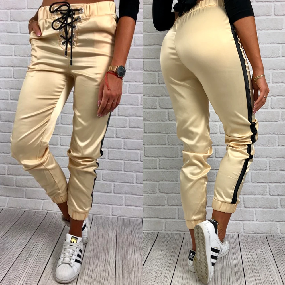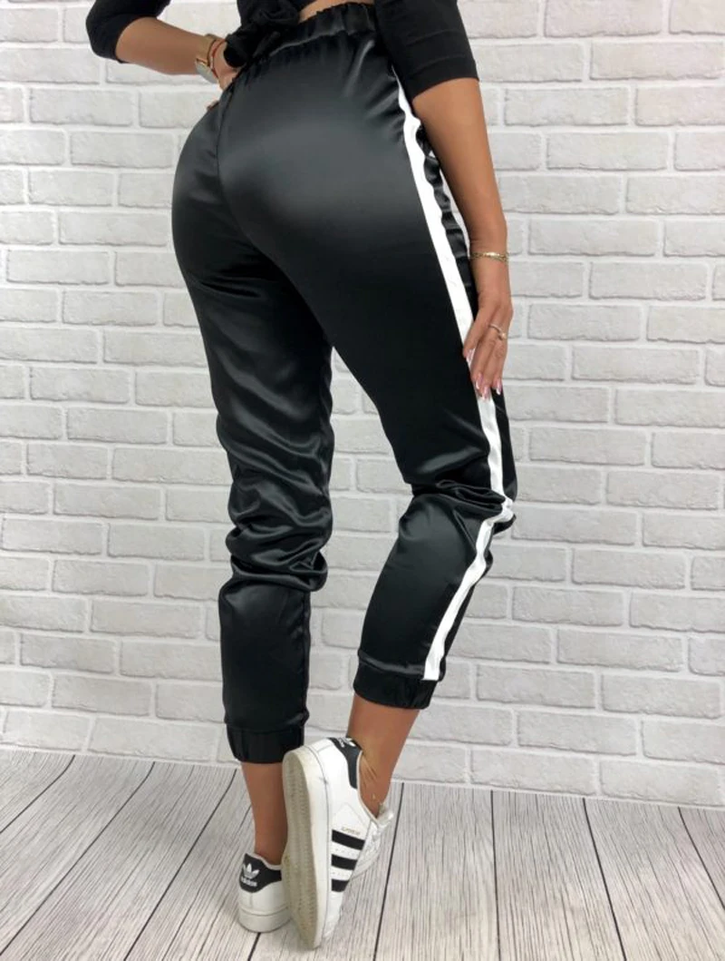 Отзывы о Женские спортивные эластичные штаны с высокой талией дышащие полосатые для бега