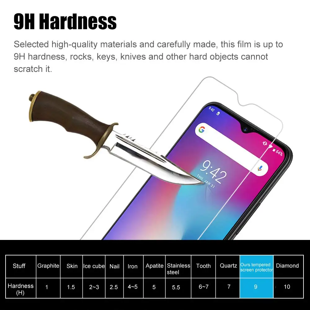 Супер жесткие, даже острые предметы, такие как ножи и ключи, не царапают пленку из закаленного стекла.