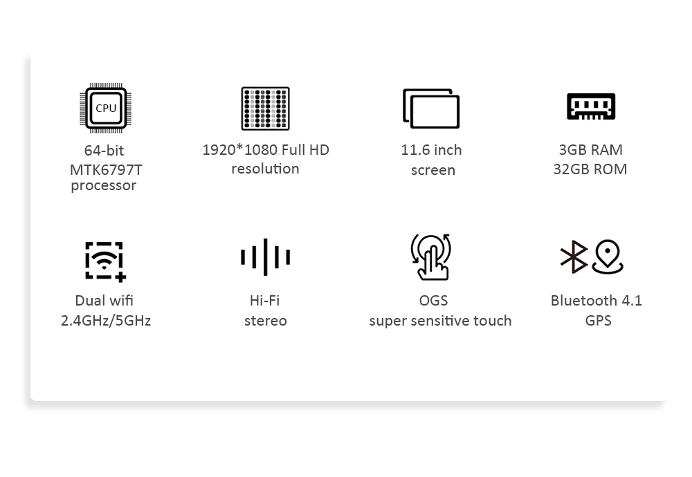 Изюминка планшета ANRY S20 11,6 дюйма: Чрезвычайно высокоскоростное хранилище: благодаря 3 ГБ ОЗУ 32 Гб ПЗУ S20 обеспечивает плавную работу нескольких приложений. Полностью ламинированный сенсорный экран IPS: 11,6 дюймовый сенсорный экран с высоким разрешением 1920*1080, который может показать вам СВЕРХЧЕТКОЕ изображение. Металлическая крышка: полностью изготовлена из металла, хотя вес всего 698 г и толщина всего 7 мм, что делает ее очень портативной и светильник кой. Мощная Производительность: 10-ядерный процессор Heilo X25 содержит: 2 * A27 (2,5 ГГц) + 4 * A53(2 ГГц) + 4 * A53 (1,55 ГГц) сильные ядра. Что дает s20. выдающуюся производительность. Стабильно Играйте в популярные игры с графическим процессором Mail T880 MP4 Широкое беспроводное соединение: 2,4G/5G двухдиапазонный Wi-Fi и GPS помогут вам легко найти свой путь, даже когда вы путешествуете на открытом воздухе. Система Android 8,1: предустановлена и имеет большой объем ресурсов рынка приложений. Br обеспечивает более комфортное и эффективное использование.
