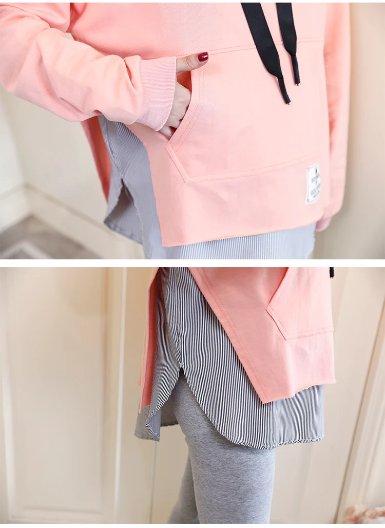 Отзывы о Pregnant Women Fashion Cotton Sweatshirts Plus Size Patchwork Stripe Loose Maternity Hooded Coat Split Embroidery Hoodies | Мать и