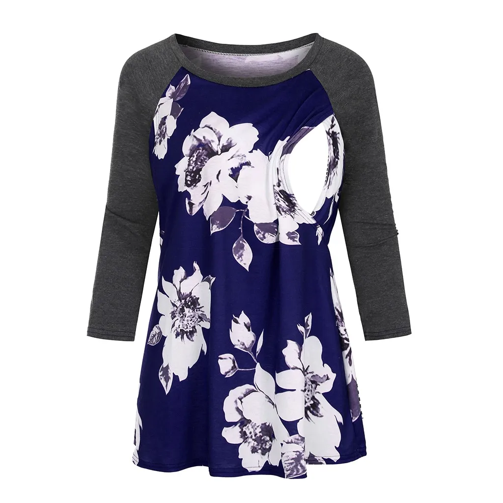 Women Maternity 3/4 Sleeve Floral printed Nursing Tops T-shirt For Breastfeeding
