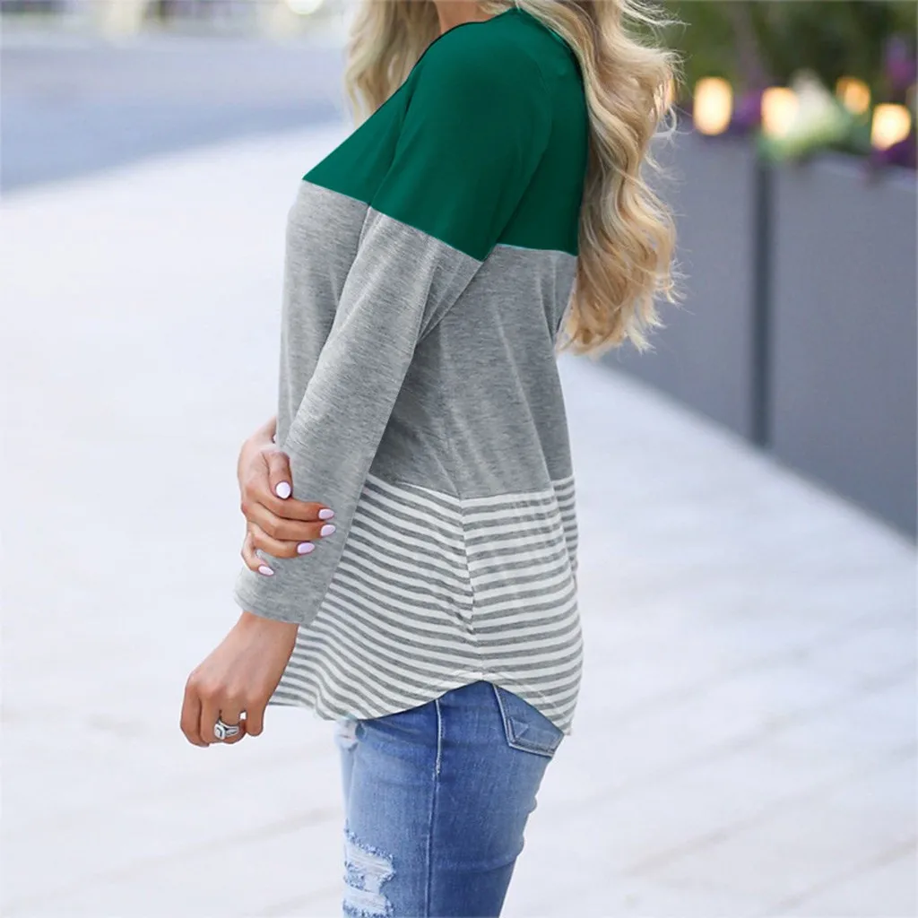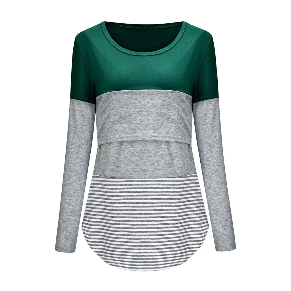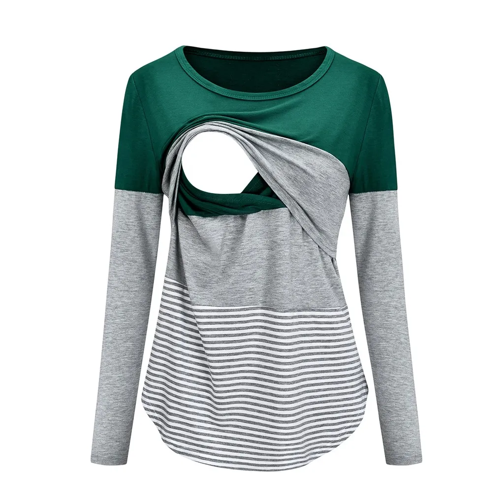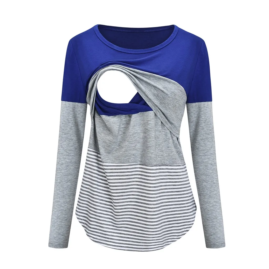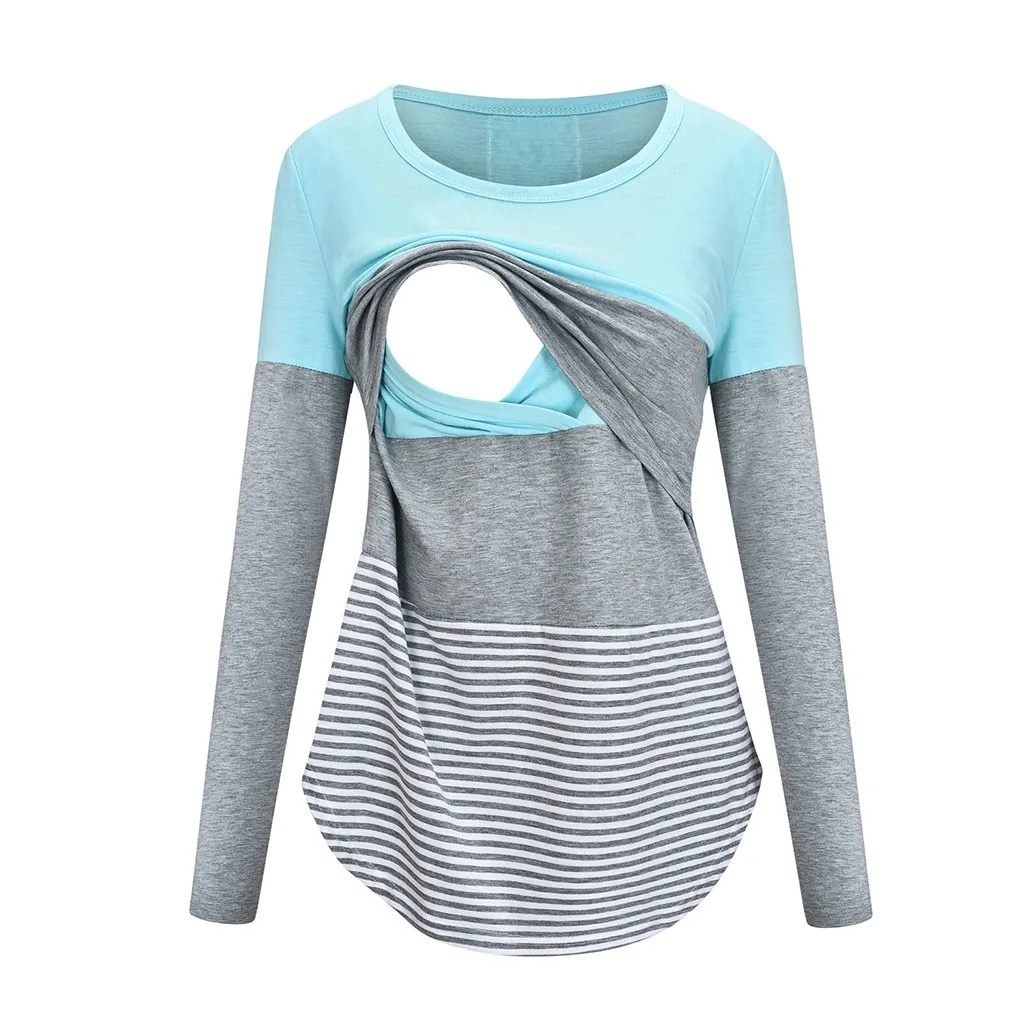Women Maternity Long Sleeve Striped Nursing Tops T-shirt For Breastfeeding