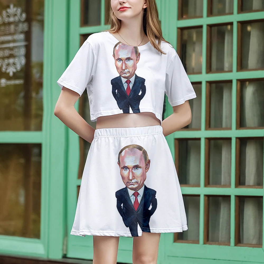 Отзывы о Костюм с короткой юбкой Путин из двух предметов рубашка унисекс стиль российский