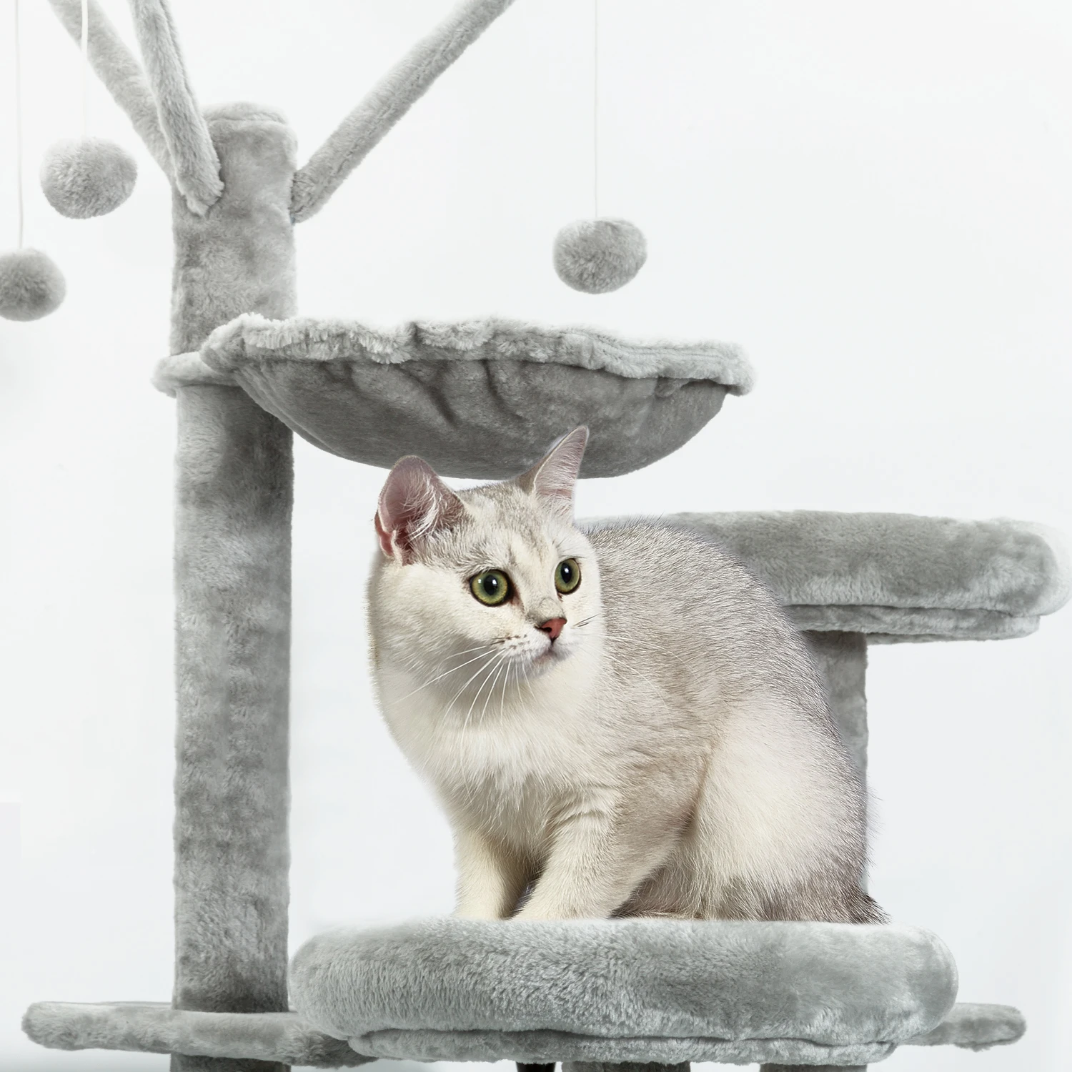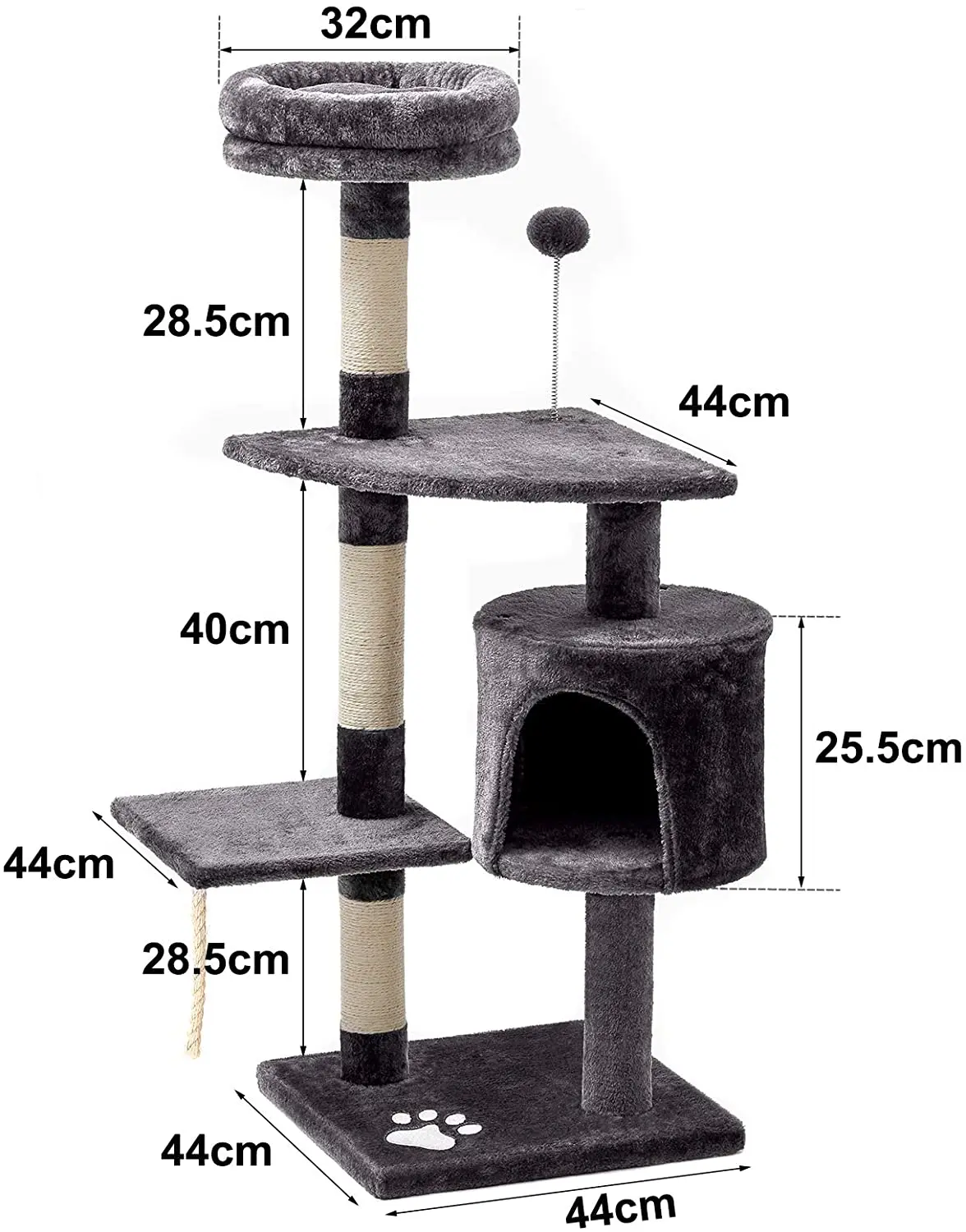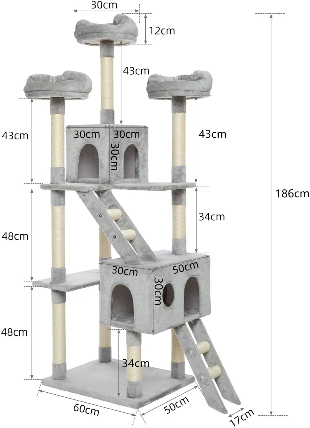 Satisifait at the request of height - Designed from seven different heights, with two gazebo, slide, three platforms and several jump platforms. Your cat can experience the pleasure of exploring and hiding from multiple angles.