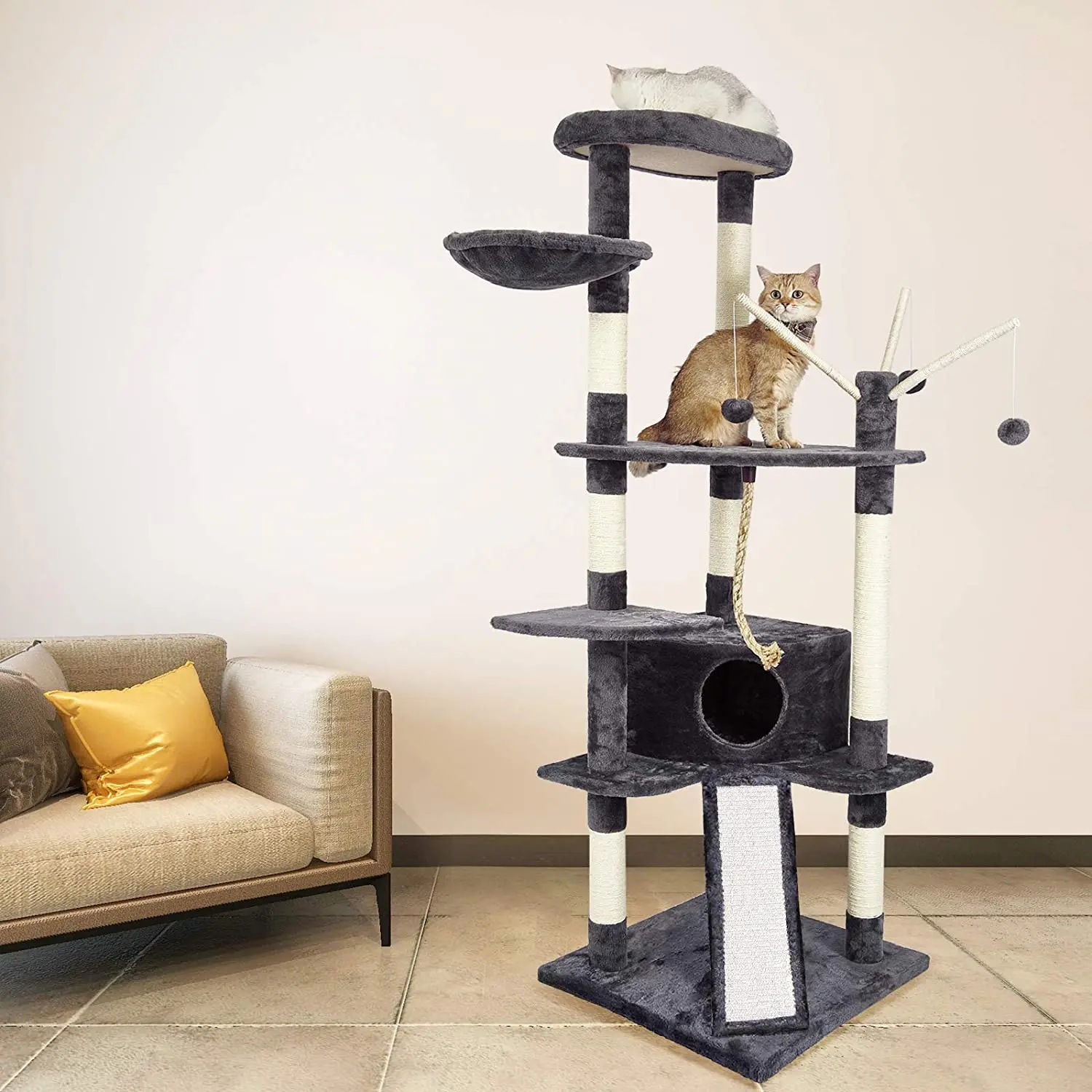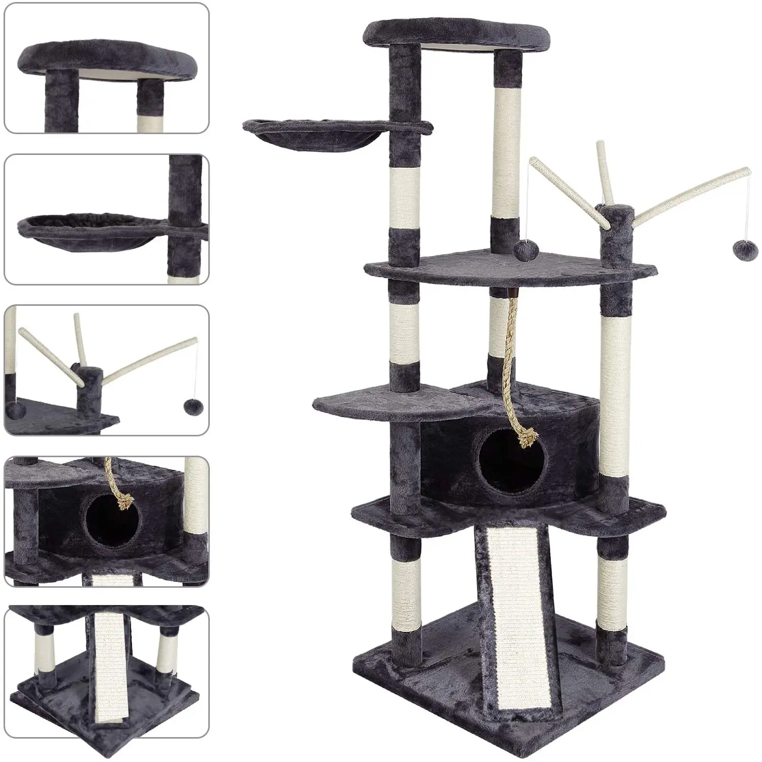 Отзывы о Cat Tree Cat‘s Climbing Frame Scratching Board Kitten Toy 6 Levels with Slide Crib Swing Sisal Height 210cm C03 | Дом и сад