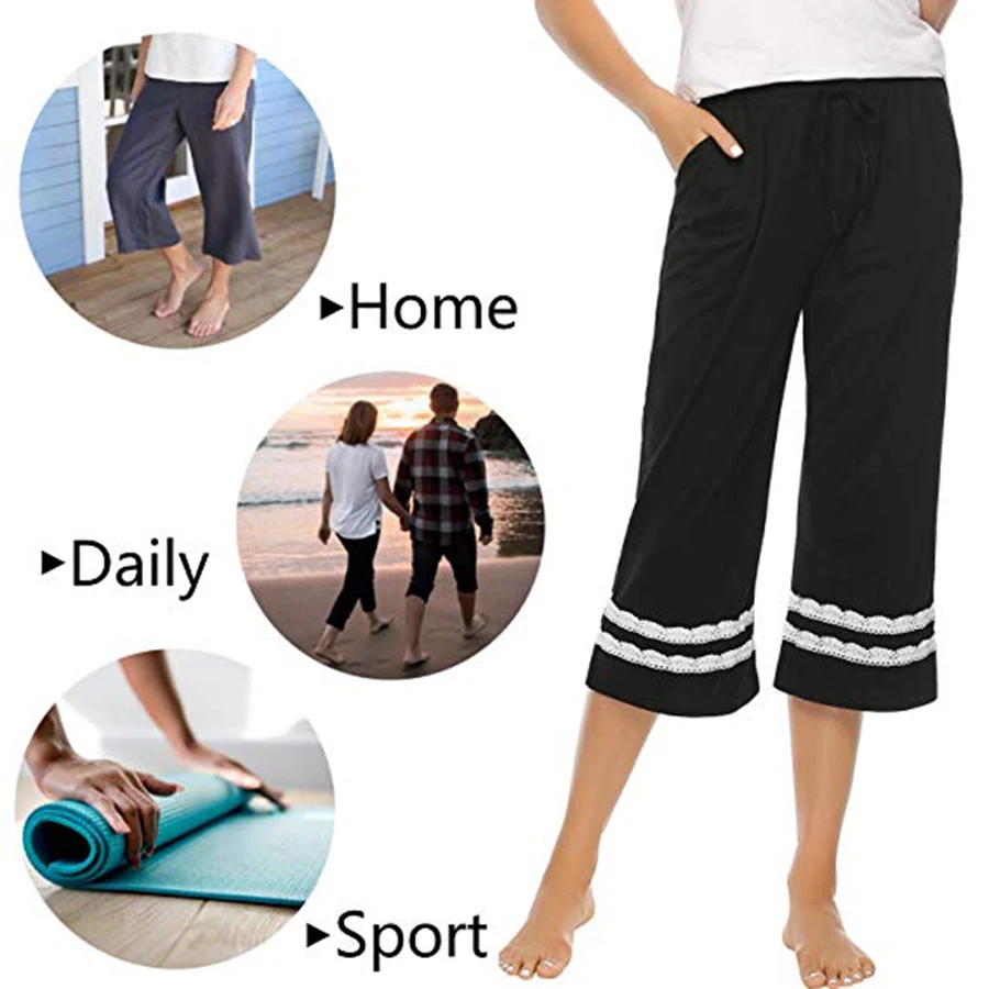 Отзывы о 2019 Женская пижама Хлопковые Штаны укороченные штаны для сна широкие с эластичной