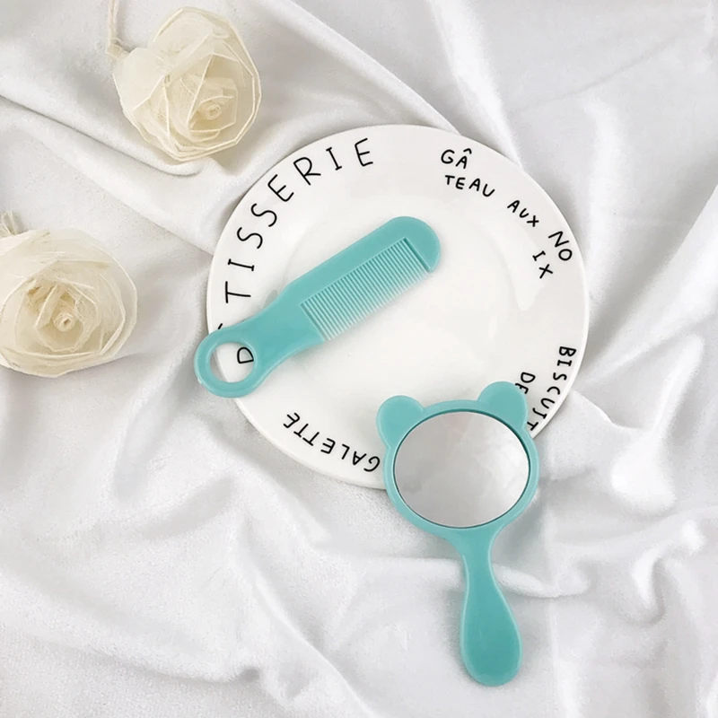 Комплект из 2 предметов, Детская расческа, зеркальный набор для девочек и мальчиков, резинки для волос яркого цвета, набор расчесок, детский портативный массажер для головы, расческа + зеркальный набор, аксессуары для ухода за волосами