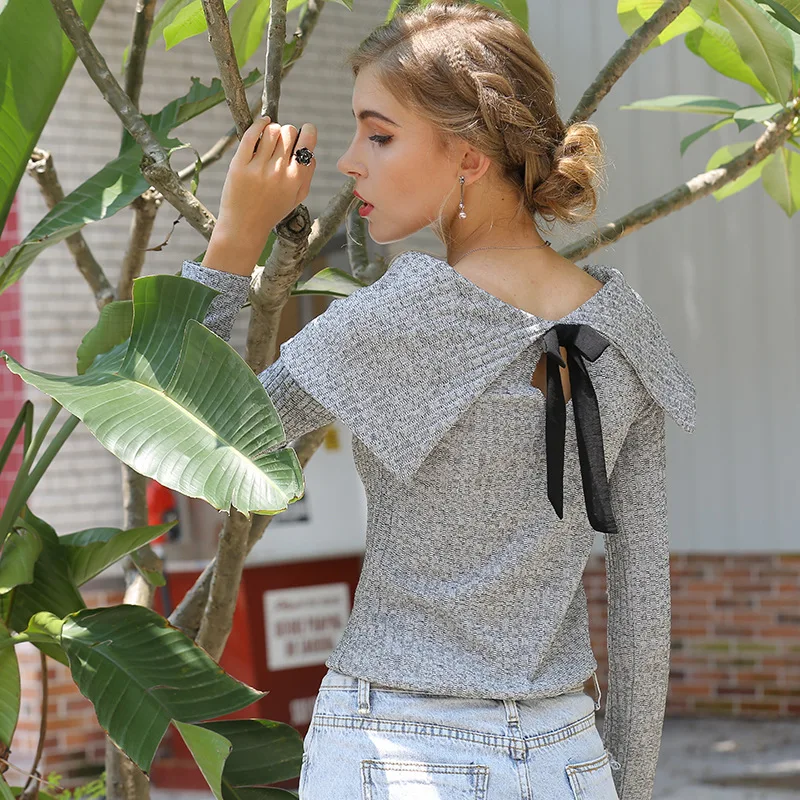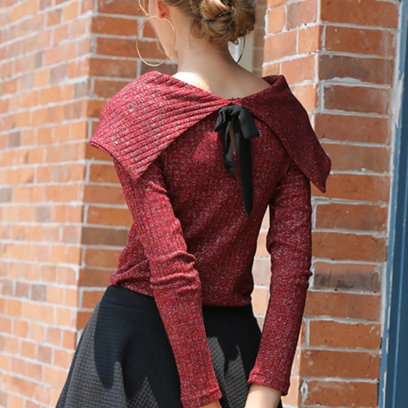Отзывы о Облегающий пуловер для женщин с отложным воротником и бантом осенняя одежда