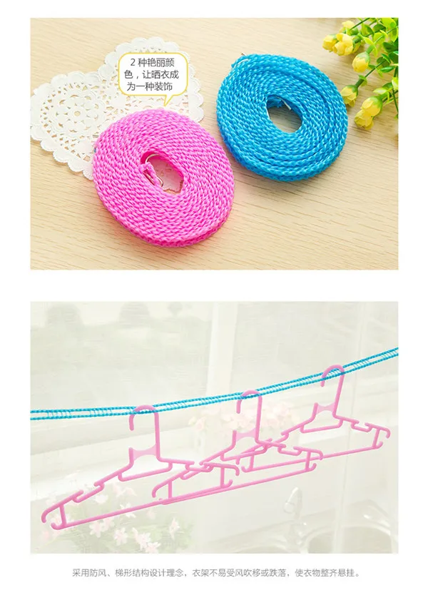 New Design 3m Colorful Multifunctional Nylon Washing Clothes Line Rope Washing Line String 3m Hangers & Racks