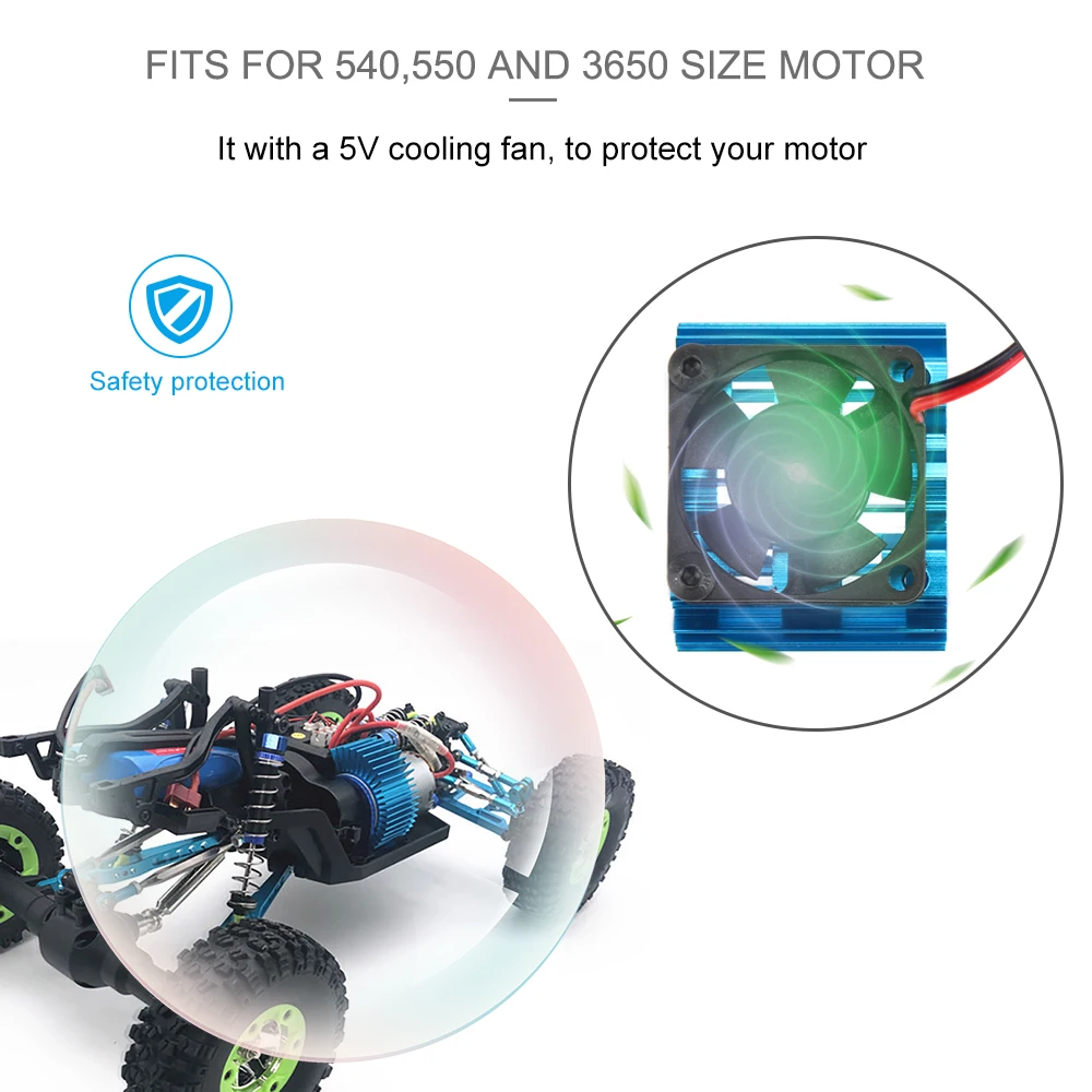 Этот радиатор подходит для двигателей размера 540550 и 3650, он поставляется с охлаждающим вентилятором 5 В для защиты вашего двигателя.