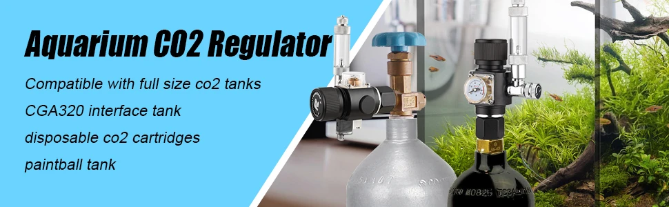 Мини-размер для почти всех резервуаров!Регулятор совместим с баком Painball, все размеры CGA320/W21.8 Резьбовой цилиндр и 5/8 ''UNF резьбовой одноразовый картридж co2. (большинство картриджей 80-90g являются резьбой 5/8'' UNF. Fluval 45 г Резьбовая 3/8 '', не подходит,)