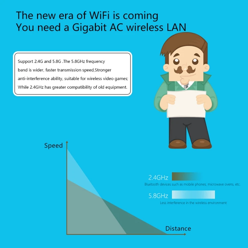 Беспроводная скорость: 2,4G:300 Мбит/с; 5,0G:866Mpbs