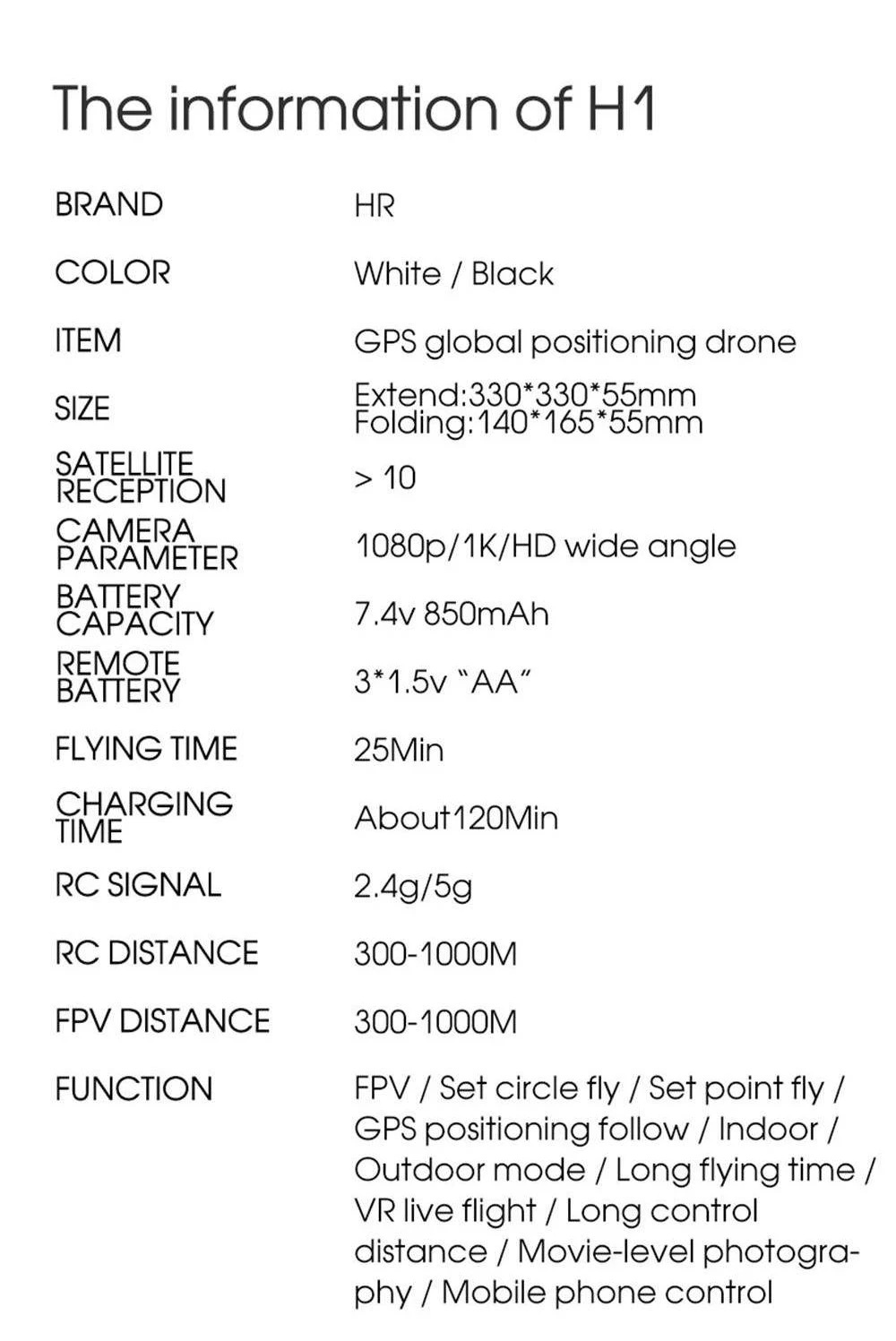 Название позиции: HRC H1G 5G WiFi FPV RC Квадрокоптер