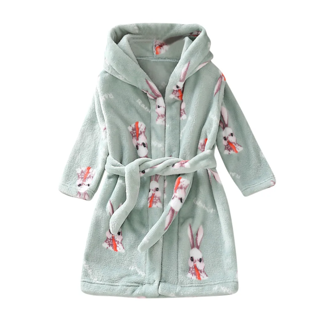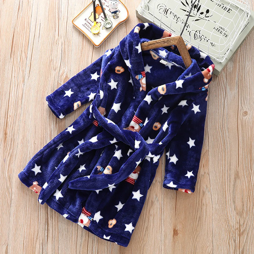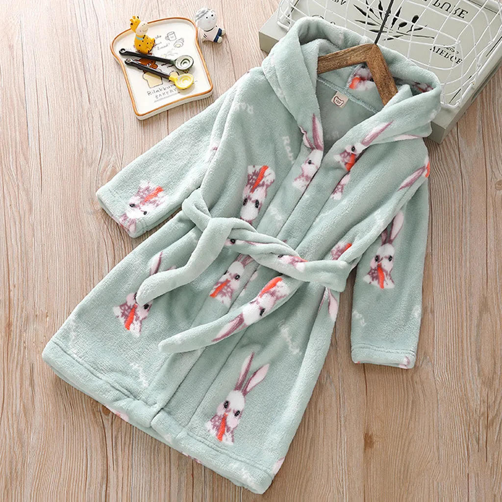 Фланелевый банный халат с капюшоном и рисунком для маленьких мальчиков и девочек, ночная рубашка, одежда для сна