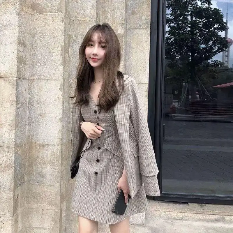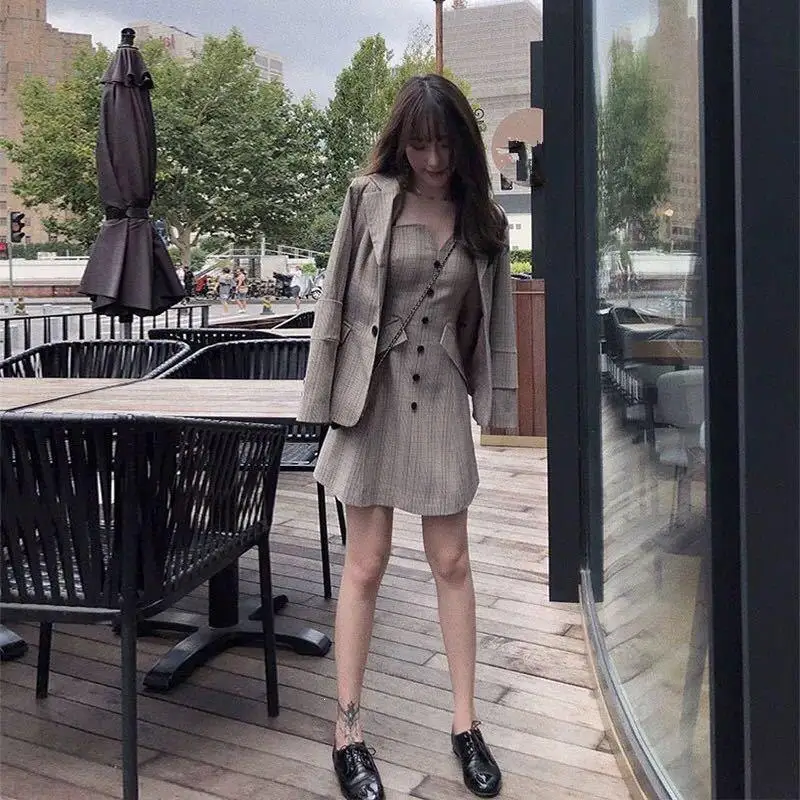 Отзывы о Женская куртка пальто и ремни Мини платье клетчатые костюмы карманы ретро тонкий