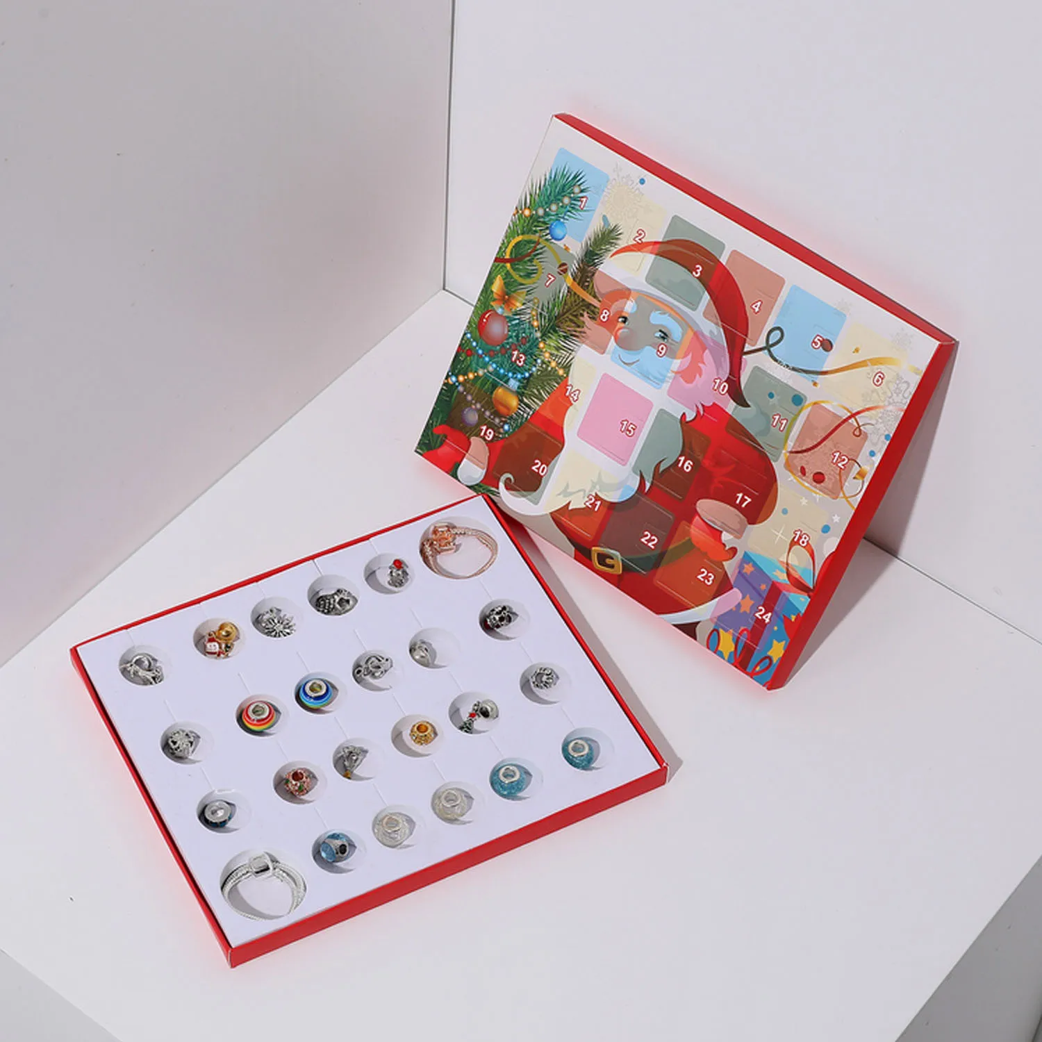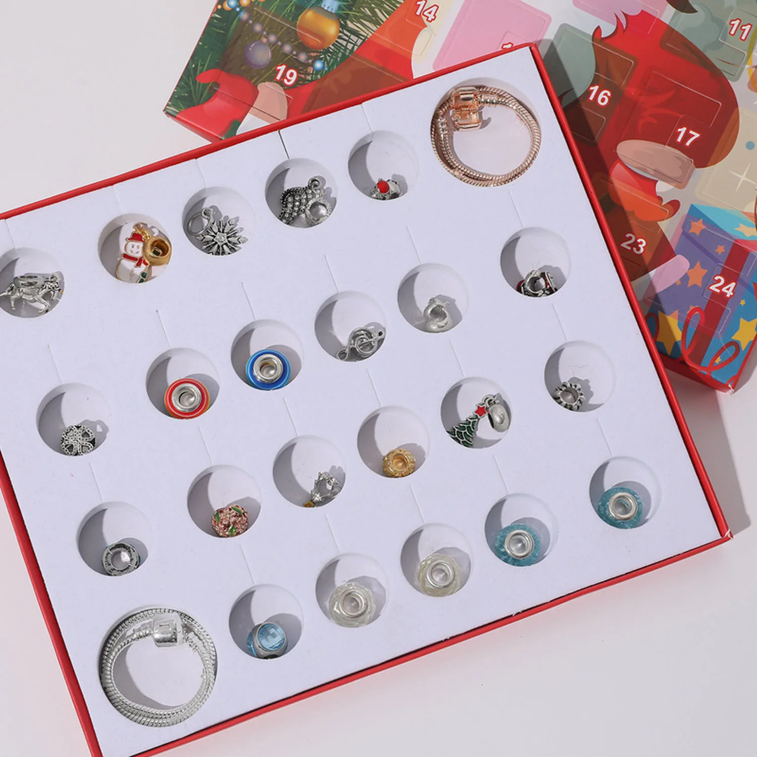 Симпатичный Рождественский календарь с обратным отсчетом, 24 дня, браслет с подвесками, бусины, набор, коробка-сюрприз для девочек, детские рождественские подарки