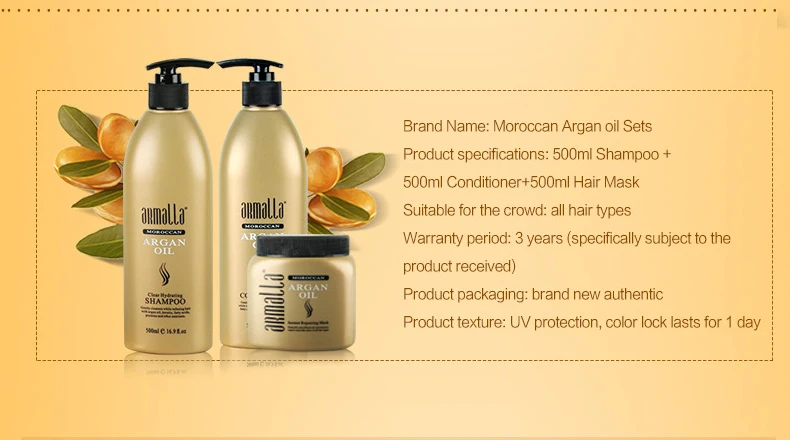 3 шт. увлажняющий поврежденный сухой шампунь Armalla 500 мл Профессиональный натуральный шампунь и 500 мл глубокий кондиционер + 500 мл маска для волос с аргановым маслом