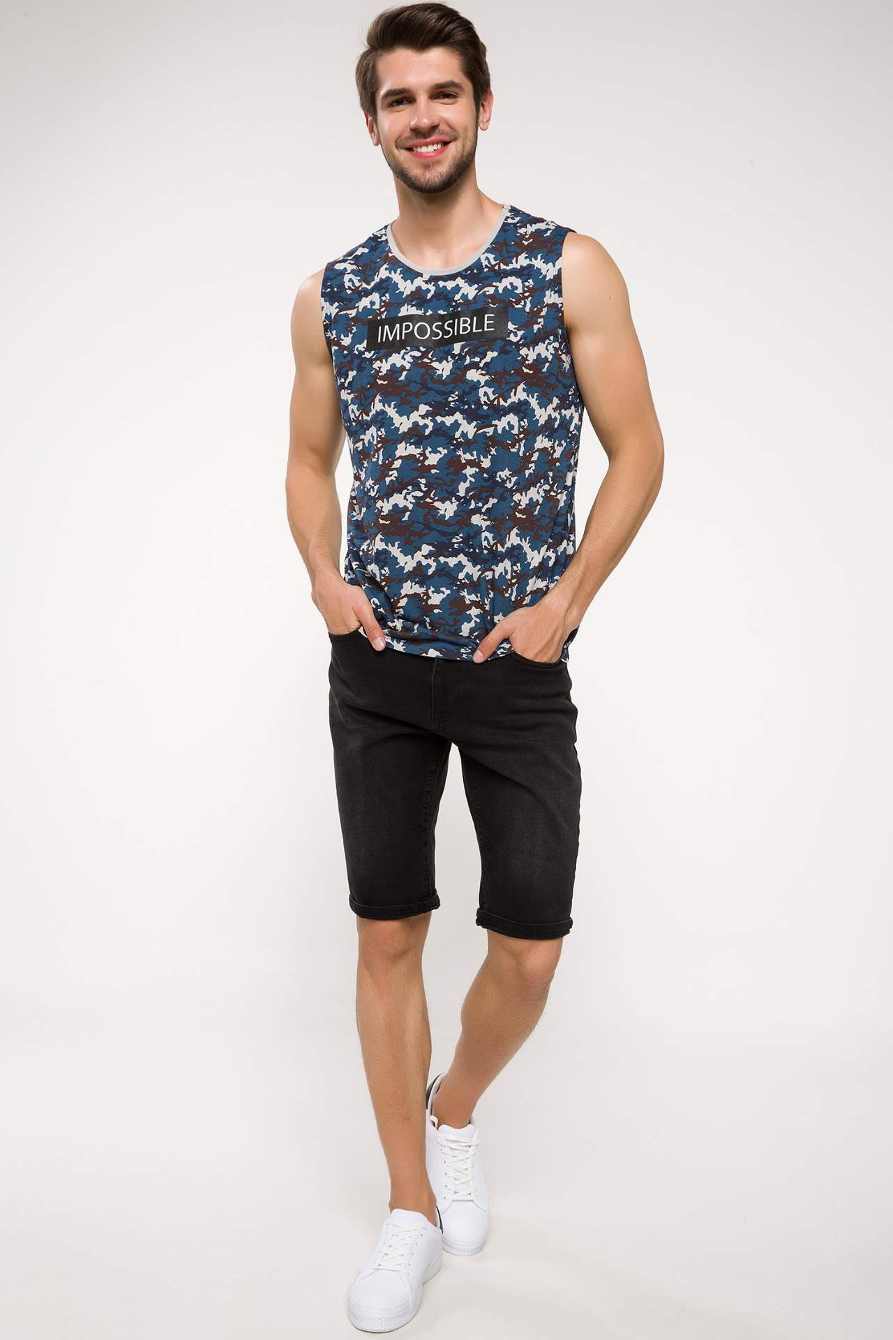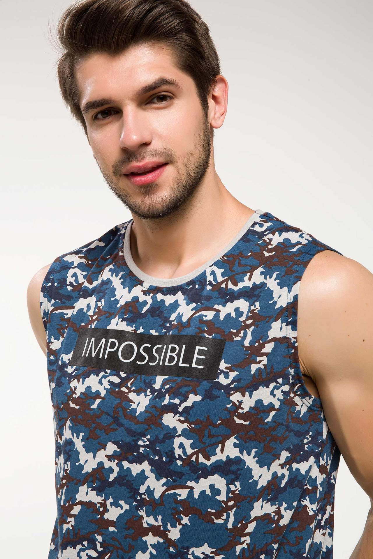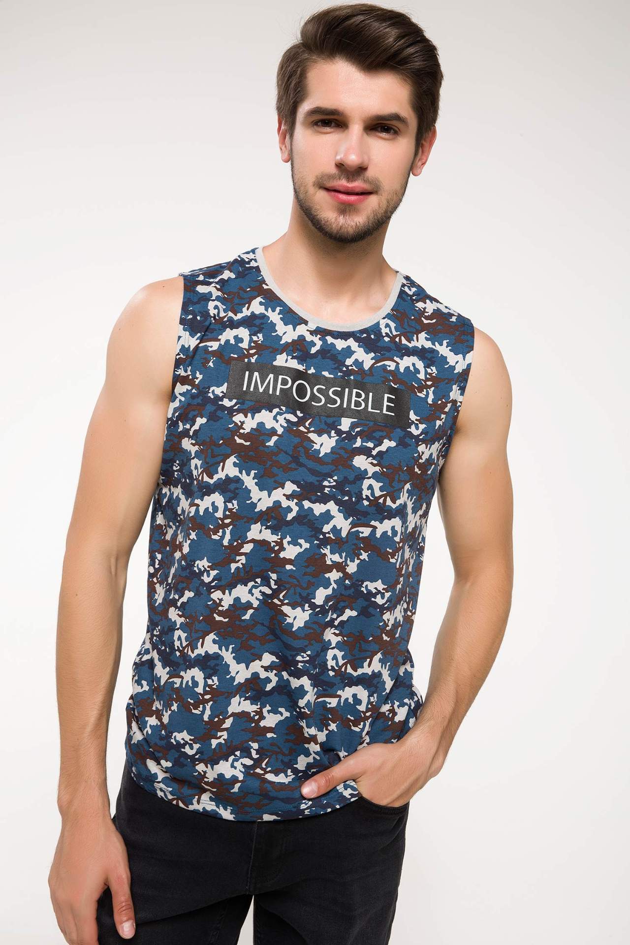 Отзывы о Мужская майка без рукавов DeFacto повседневная синяя с принтом летняя одежда для