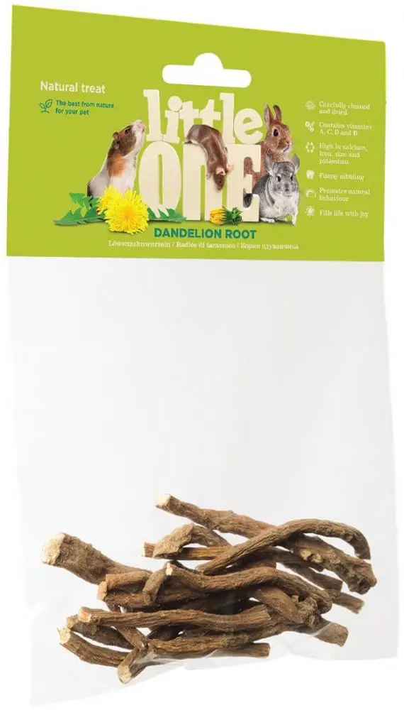Little One dandelion rootIs not only a favorite treat for all kinds of decorative animals, but also a useful addition to the daily diet. Your pet will receive calcium and other mineral substances contained in the roots. In addition, the root of the dandelion accumulates inulin, strengthening and healing the liver.