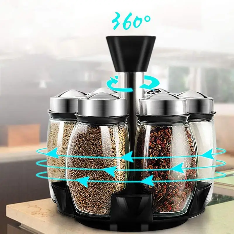 Отзывы о Revolving Countertop Herb and Spice Rack with 6 Glass Seasoning Airtight Jar Container Bottles Stainless Steel Lids Ro | Дом и сад