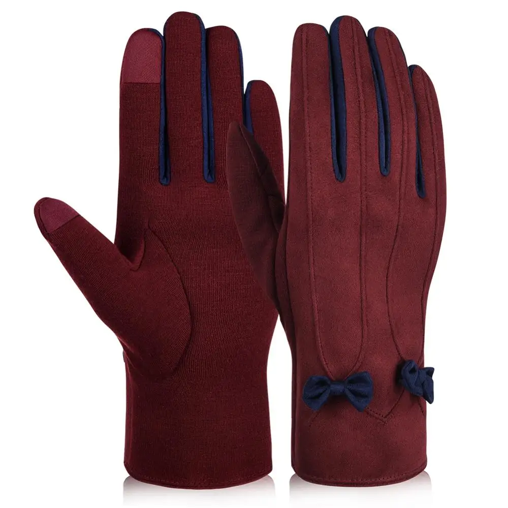 Наши перчатки с сенсорным экраном Vbiger с маленьким бантом хорошо защитят ваши руки в холодную зиму. Кроме того, тонкий дизайн, Высококачественная замшевая ткань и цвет красного вина, все готово показать вашу красоту и очарование.