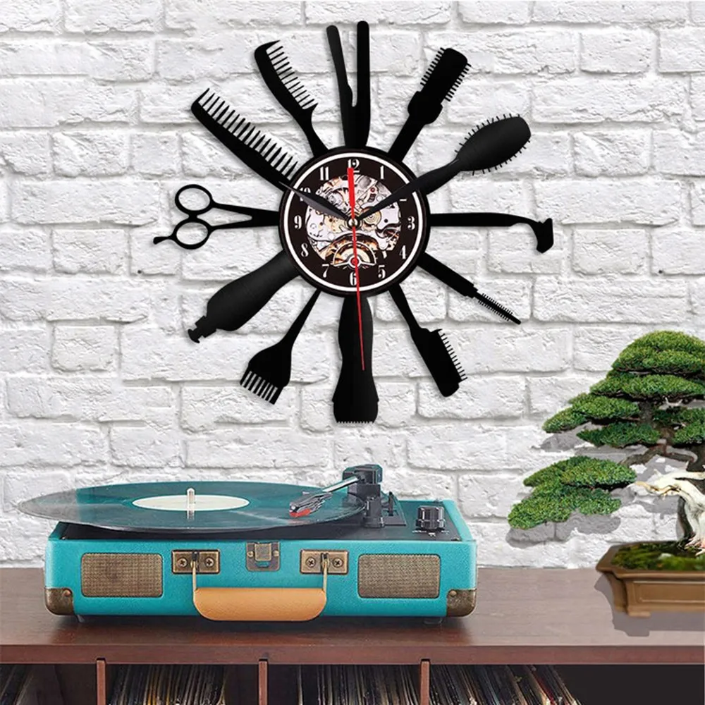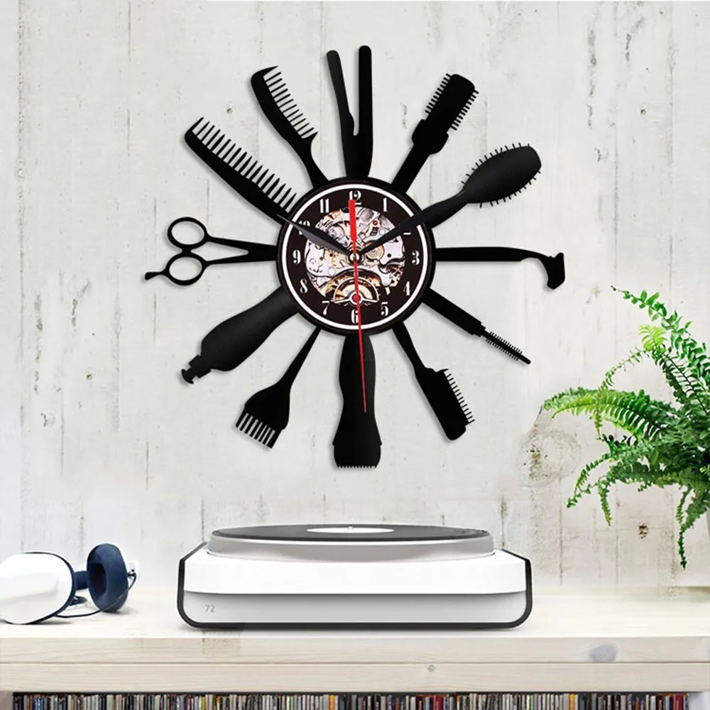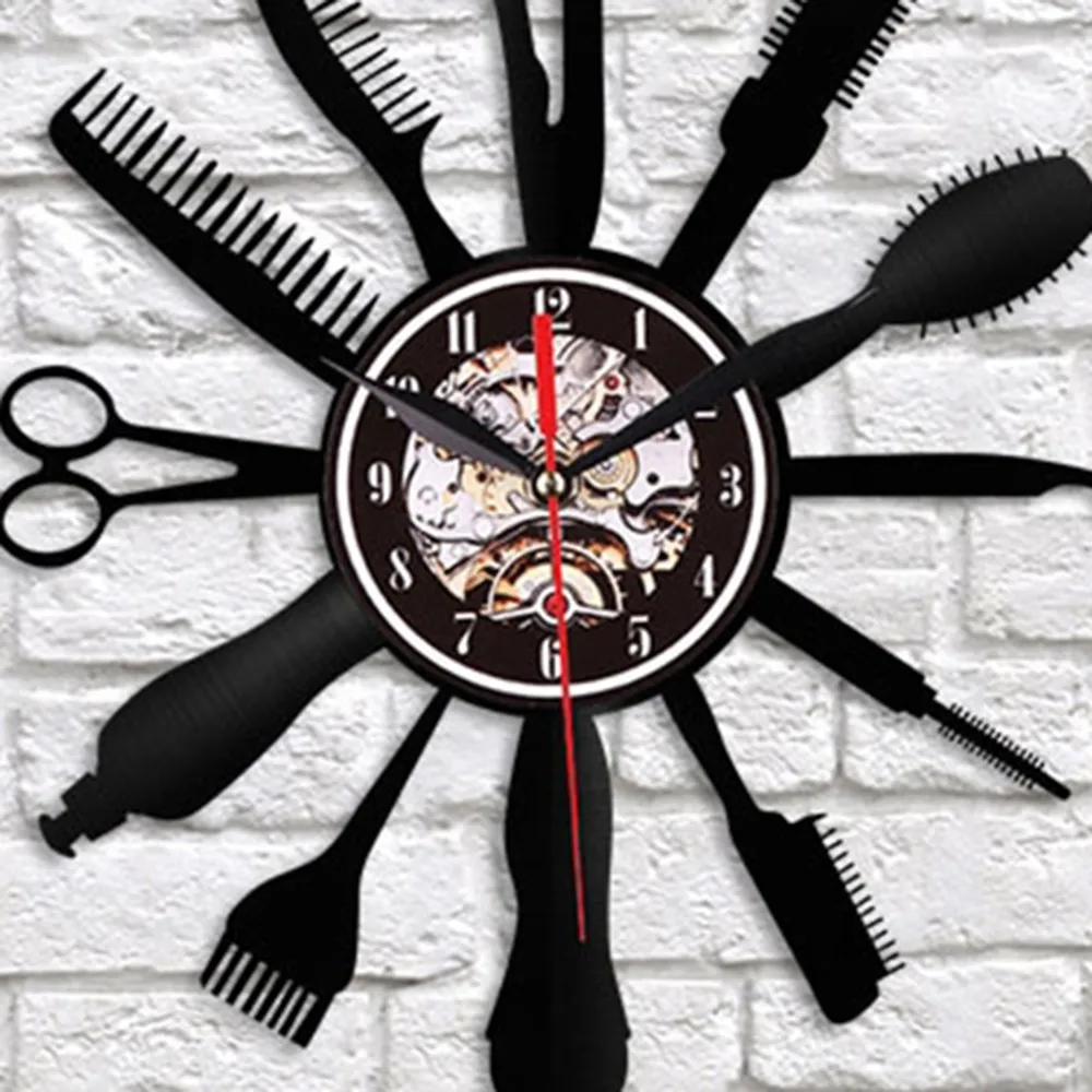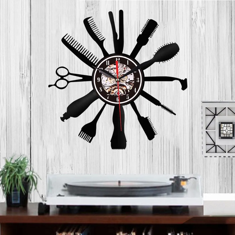 Отзывы о Парикмахерские инструменты дизайн часы Креативный виниловый инструмент для