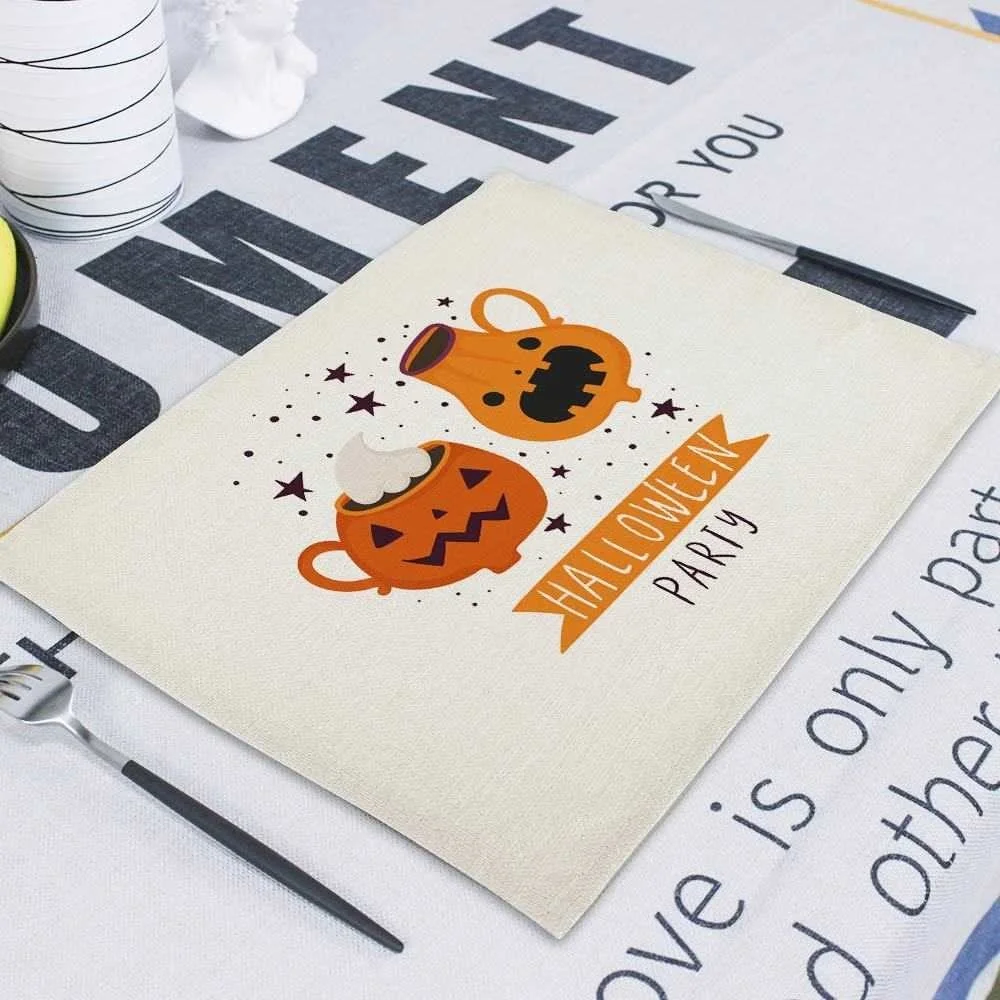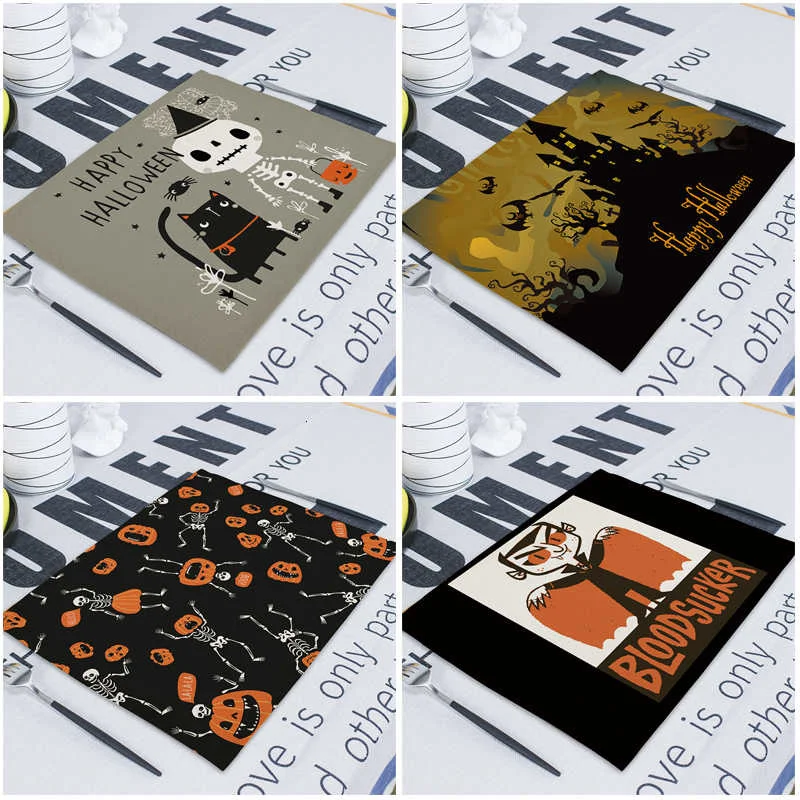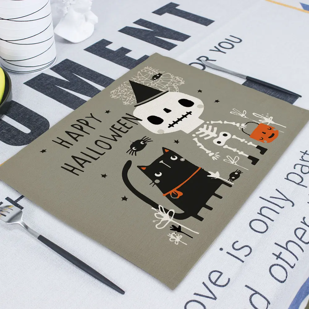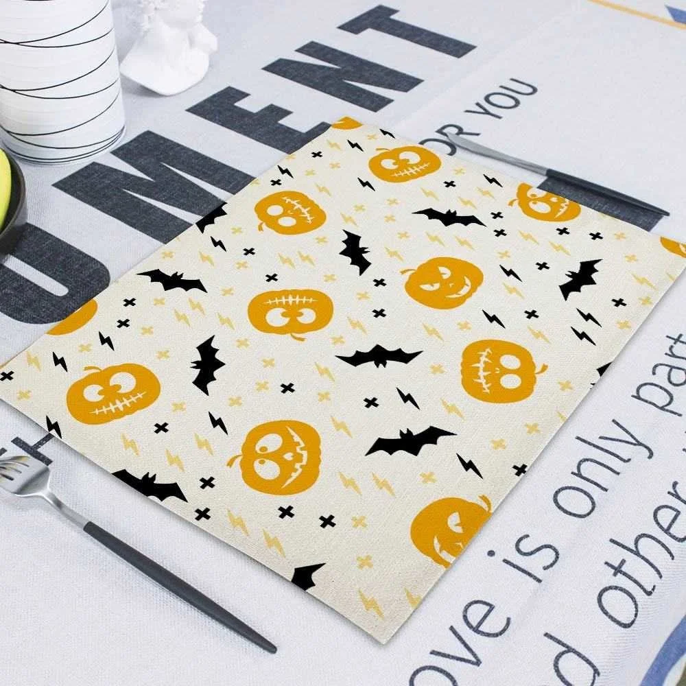 Украшение на Хэллоуин, коврики для стола, салфетка для свадьбы, 43*32 см, салфетка для стола, s, тыква, летучая мышь, льняная, с принтом, салфетка для домашнего стола