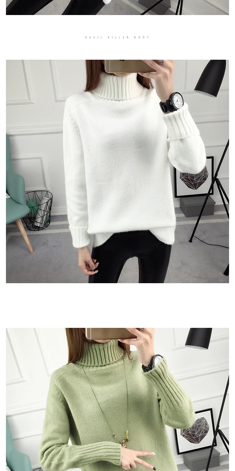 Отзывы о Женский вязаный джемпер с длинными рукавами корейский Свободный пуловер высоким