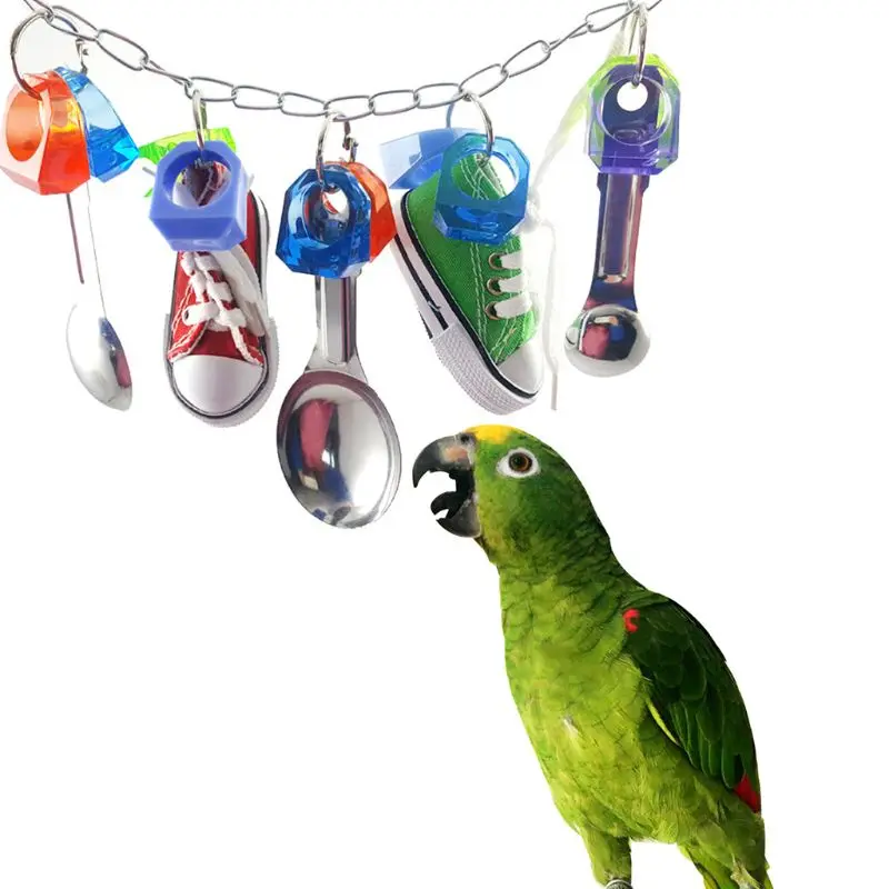 Игрушка для укуса попугая, ложка из нержавеющей стали, совок, кроссовки, подвесные игрушки для обуви