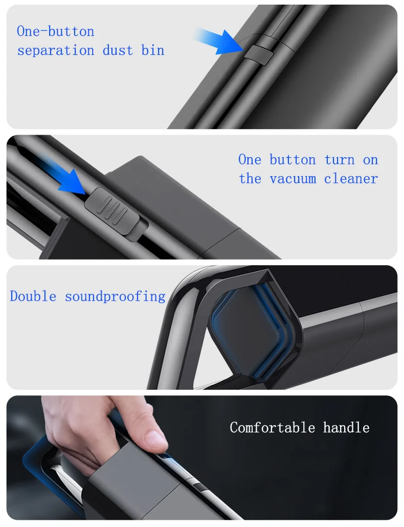 Сильная Адсорбция, высокоскоростной Циклон, может удалить все виды мусора, пыли, мусора и другого мусора, создать чистое пространство в вашем автомобиле, доме, комнате и т. Д. Дайте различные головки кисти для очистки и более тщательной очистки