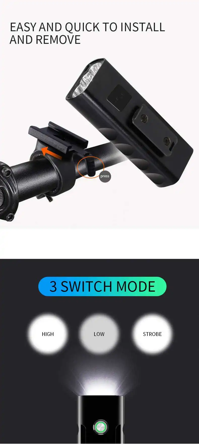Велосипедный светильник Размеры | 106*48*24 мм/4,17*1,88*0,94 дюймов |