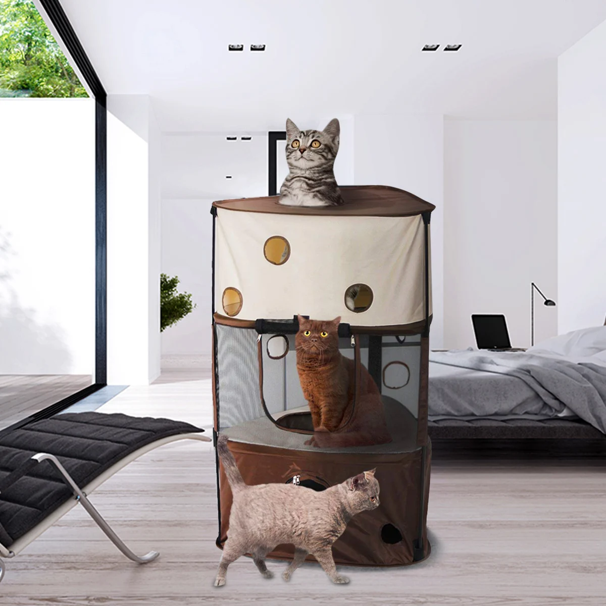 LПространство для большего количества кошек:Взаимосвязанный трехуровневый дизайн обеспечивает больше места для большего количества кошек, и вы'Необходимо подготовить другие палатки, даже если у вас есть две или более кошек.