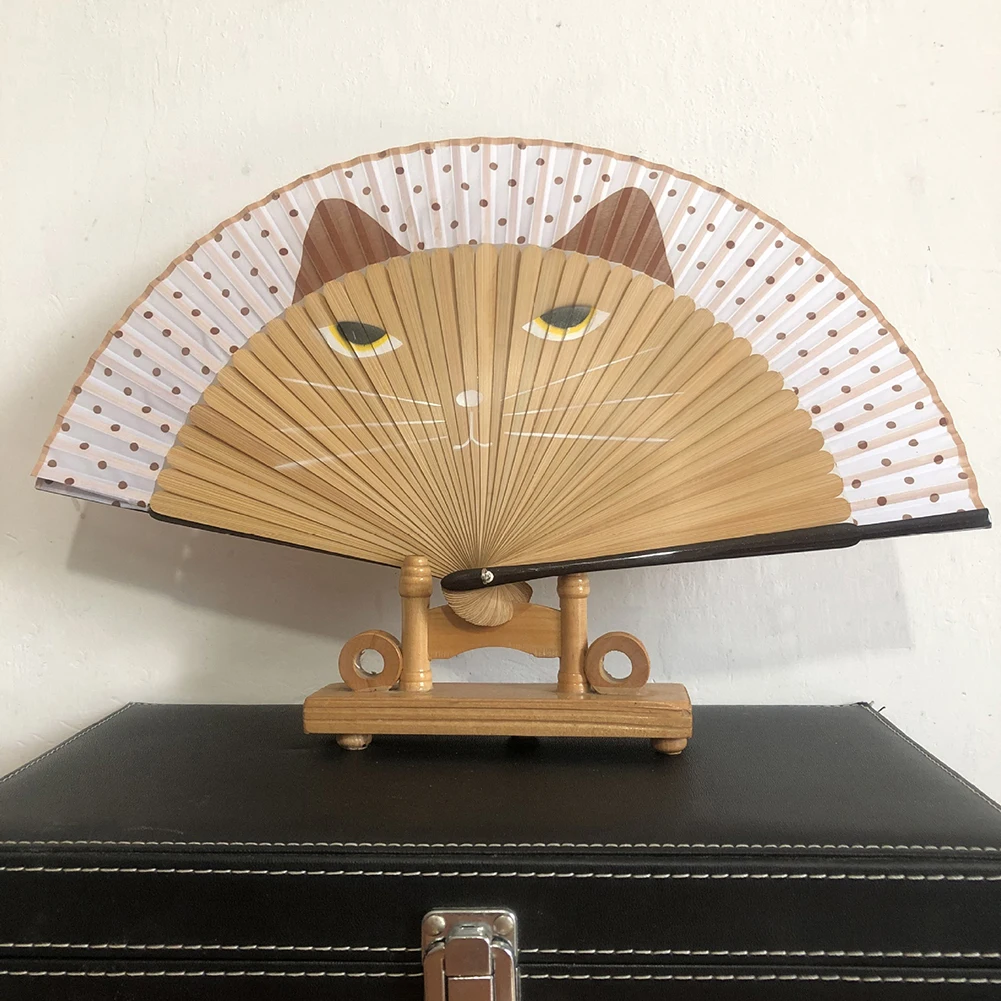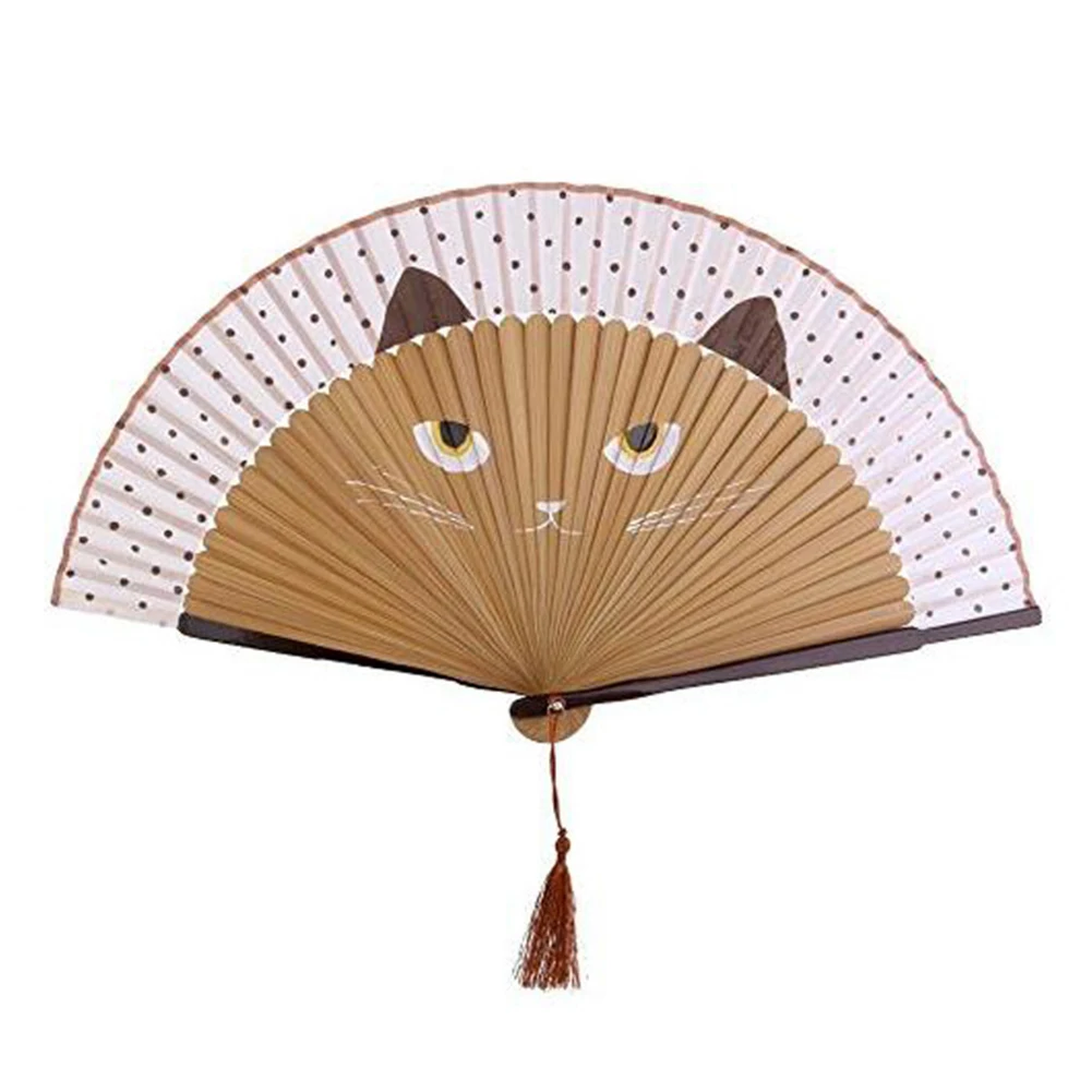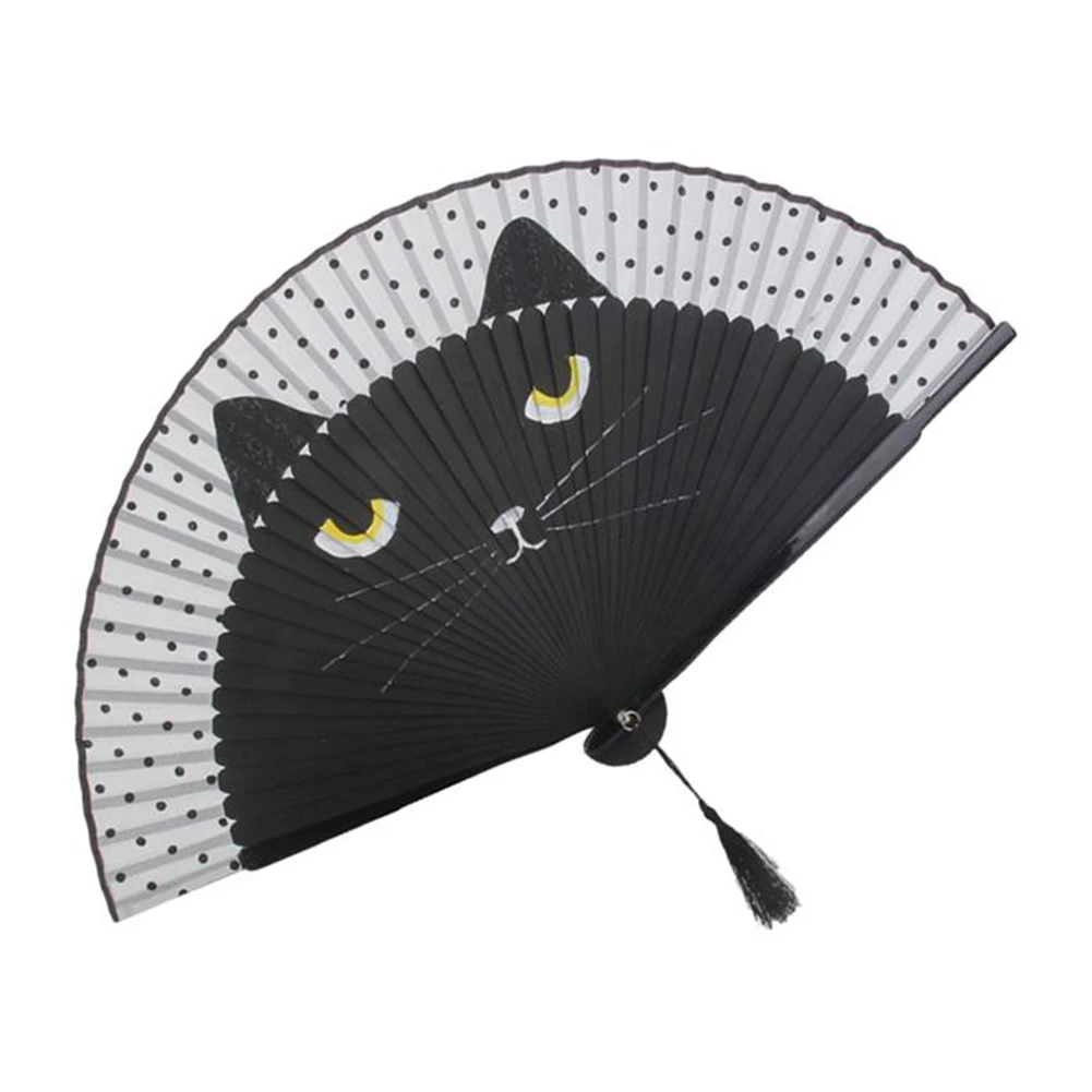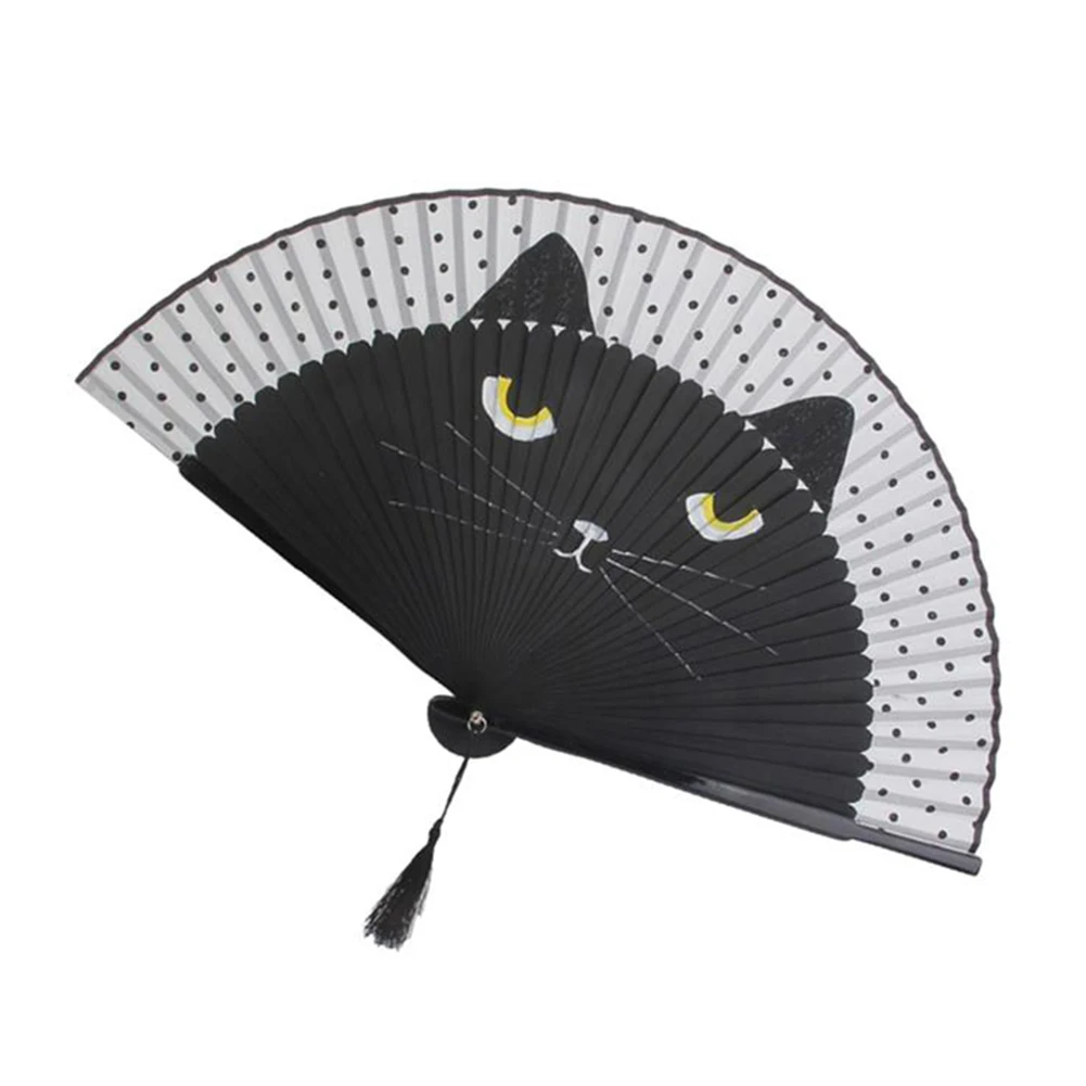Винтажный складной ручной вентилятор для танцев с рисунком кота, подарок для украшения дома