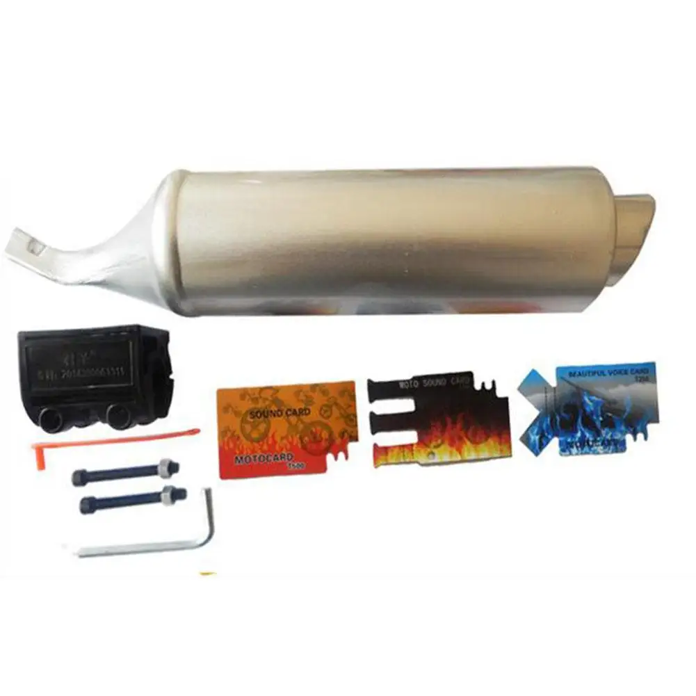 1 комплект выхлопной трубы [наклейка * 1, инструмент для сборки * 1 звуковая карта Motocard X6 (500cc/250cc/100cc), хост-карта X1, Монтажный винт X2, ремешок X1, выхлопная труба хвоста X1, многоязычная инструкция X1](цветная упаковка)