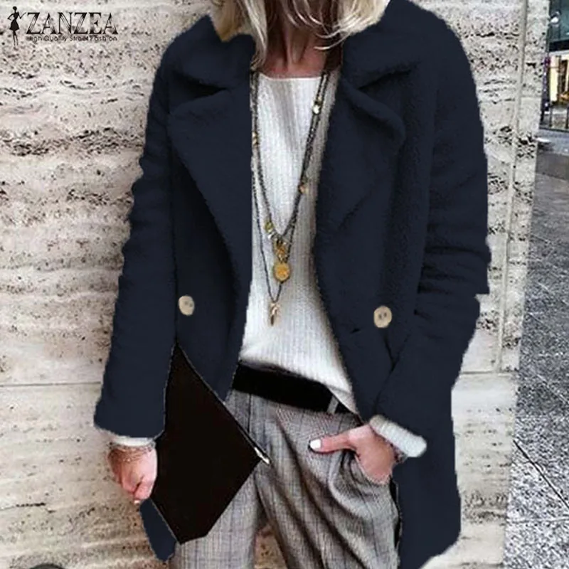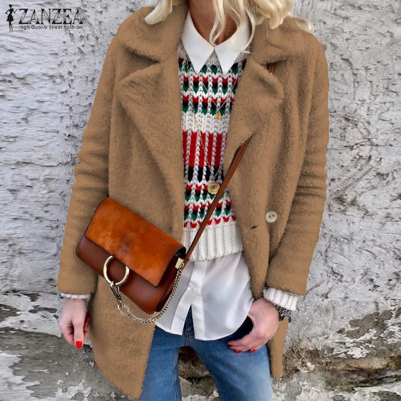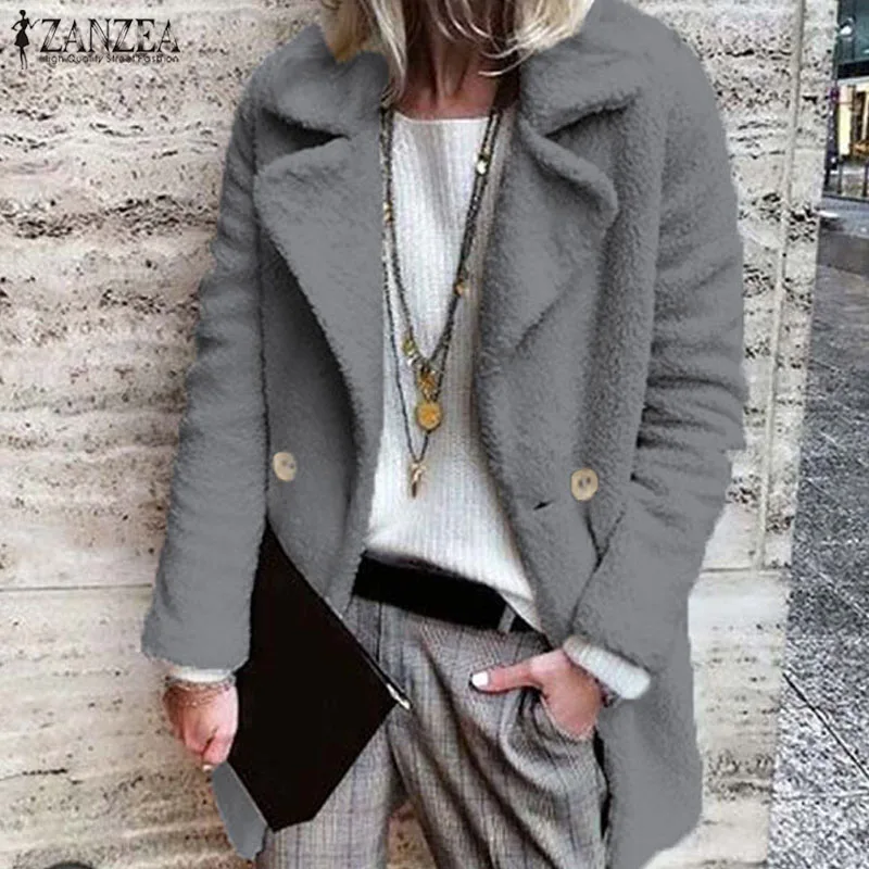 Отзывы о Модные пушистые пальто женские куртки 2022 ZANZEA осенняя верхняя одежда с лацканами